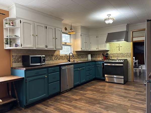 Welcome to this spacious, country retreat set on 10 beautiful acres in Solon Springs. This two-story home offers an abundance of room and storage — ideal for anyone looking for both comfort and functionality. This home features 4 bedrooms (two on each floor) and 2 full bathrooms, giving room for family, guests, or a home office. The main floor includes a roomy, oversized kitchen with a breakfast nook and newer appliances. The living room is centered around a large fireplace with a wood-insert, creating a warm and inviting atmosphere. Laundry is conveniently located on the main level. The full basement provides tons of storage space, plus a large rec room — perfect for a playroom, media area, or hobby space. Garage & Workshop: Attached via a breezeway is an oversized two-car garage with an additional lean-to. There is also a large 50' × 34' heated and insulated workshop, again with its own lean-to for more storage — ideal for woodworking, automotive, or any hands-on project. Style & Feel: This property blends rural charm with practical, large-scale living. The oversized rooms, generous workshop, and acreage give a sense of freedom and flexibility — whether you want a quiet retreat, a place for hobbies, or a functional family home.