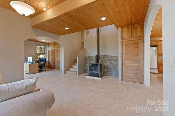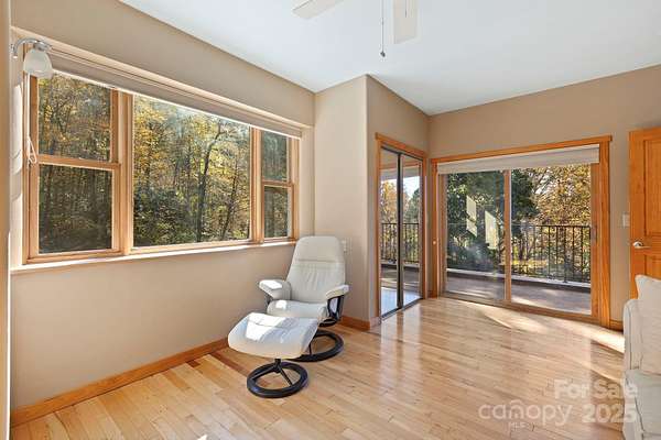 Casa Solara is a one-of-a-kind off-grid retreat 4 miles north of Black Mountain. Experience sustainable mountain living at its finest in this architect-designed passive solar masterpiece set on 13 private acres just minutes from downtown. Designed by Alice Dodson and built by Mark Bondurant of Rare Earth Builders, this 2006 custom home blends elegant design, advanced green technology, and stunning long-range mountain views. The main residence offers three bedrooms and three bathrooms with 2534 square feet, a private well, and a three-bedroom septic system. The south-facing orientation captures maximum sunlight and breathtaking vistas while twelve-inch-thick concrete walls (R-17) provide exceptional insulation and natural humidity control. Casa Solara operates fully off the grid, powered by solar electric and solar thermal systems with a Kohler propane generator backup. The main level features an open-concept kitchen, living room, and study with graceful curved walls, radiant floor heat, and a propane stove. Expansive windows fill the space with natural light and frame the surrounding mountains. The upper level includes two bedrooms and one large bath. Both bedrooms open onto a private mountain-view balcony. Also a yoga or sunroom studio offers panoramic views. The lower level includes a bright walk-out basement with one bedroom, one bath, a bonus room, media room, and utility and battery room that houses the off-grid systems. Casa Solara is powered by a 3.6-kilowatt photovoltaic system with 30 -120 Watt modules plus 10 - 320 Watt Modules., an Outback Inverter power system, and 48 large industrial batteries. A six-panel solar thermal array provides domestic hot water and supports the radiant floor heating system, with a (Kohler) propane generator available when needed. There is a newly constructed on-grid guest house (top rated Energy Star Home) that was built in 2025 by Rare Earth Builders. It has 600 square feet - one bedroom and one bath, an open kitchen and living area that flows to a large private deck with spectacular mountain views. Elevated ten feet above ground, it includes a storage and utility area below. Additional property features include a 220-square-foot woodworking shop, a 372-square-foot storage cabin, a 240-square-foot chicken barn, and five terraced gardens with a 1,550-gallon rainwater collection system for irrigation. The 13-acre property includes fruit trees such as peach, Asian pear, and persimmon, along with thriving garden beds and the potential for subdivision or additional building sites. Casa Solara combines architectural artistry, renewable energy, and natural harmony, offering a rare opportunity to live sustainably in the mountains of Western North Carolina.