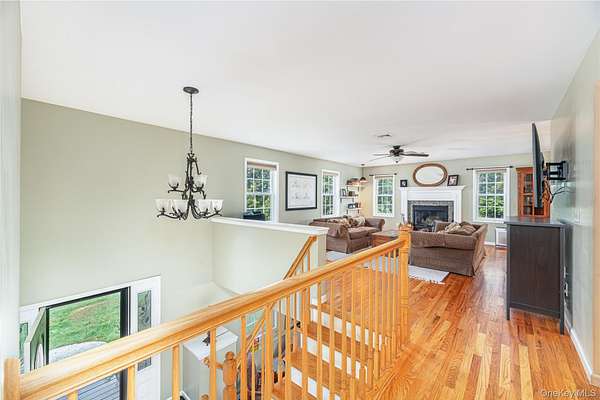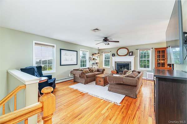 Minisink Valley School District .Charming 3-bedroom, 3-bath home nestled on a cul-de-sac in a great neighborhood, offering inviting curb appeal and spectacular mountain views that frame each sunset. The front porch welcomes you with a warm, scenic preview of the home's charm. Inside, you'll find a comfortable layout featuring a living room with hardwood floors and a cozy fireplace, seamlessly open to the dining room for easy entertaining. The dining area flows into a beautifully updated kitchen, where a breakfast bar island, granite countertops, and a gas stove combine style with practicality. A large family room provides additional living space for gatherings or relaxation. The primary suite is a retreat with two closets and a private bathroom, while two additional bedrooms share full baths, ensuring convenience and privacy. Practical extras include a fenced yard with a deck and patio, hot tub, perfect for outdoor enjoyment, and a two-car garage for parking and storage. This home sits in a wonderful neighborhood with outstanding mountain views, offering tranquil sunsets and a lifestyle that blends comfort with natural beauty. You do NOT want to miss this one! Minisink Valley School District
