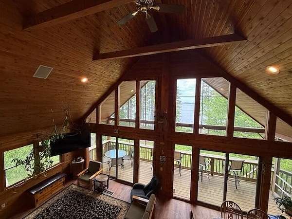 Turnkey Chalet on Gardner Lake - 264' Waterfront, 4.5 Acres. This beautifully maintained 4-bedroom, 2-bath Chalet offers a rare opportunity on coveted Gardner Lake with 264 feet of clear, surveyed waterfront and over 4.5 acres of privacy. The open kitchen-dining-living space is ideal for summer fun, holiday gatherings, and lakeside relaxation. Enjoy lake views from the second-floor suite with a cozy reading nook, or retreat to the finished walkout basement featuring two bedrooms, a spacious second living room with a woodstove, and sliding glass doors for direct lake access. The highlight? A 28' x 7' screened-in porch with a baraEUR"perfect for morning coffee, rainy-day reads, or evening cocktails to the calls of the loons. The property boasts mature plum, apple, and pear trees, grape vines, and a raspberry patch. Lovingly owned for over 20 years, this home offers a solid 3-year rental history on VRBO and AirbnbaEUR"ideal as a year-round retreat or income-generating rental. Located just 10 minutes from downtown Machias with its shops, restaurants, university, and seasonal farmers' markets, plus nearby saltwater access, trails, ATV routes, and kayak launches. A rare gem on one of Washington County's most cherished lakes.