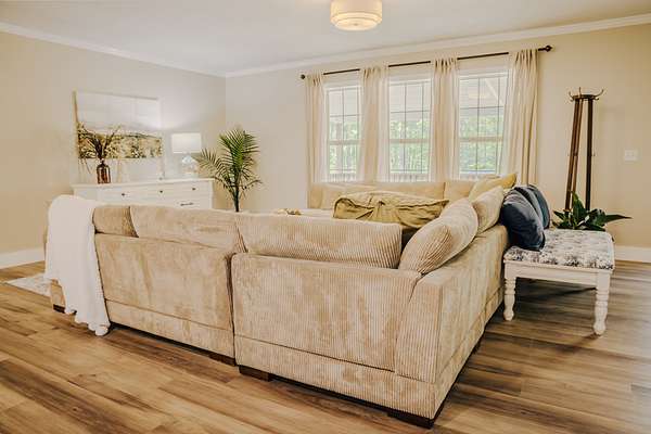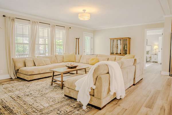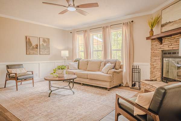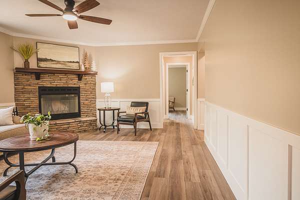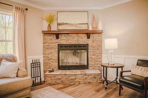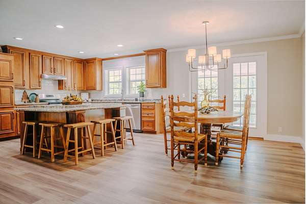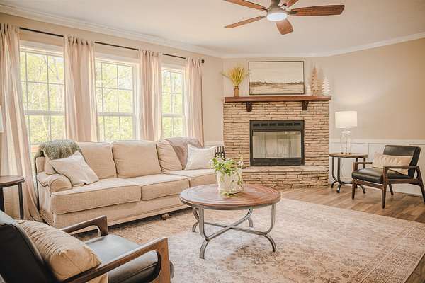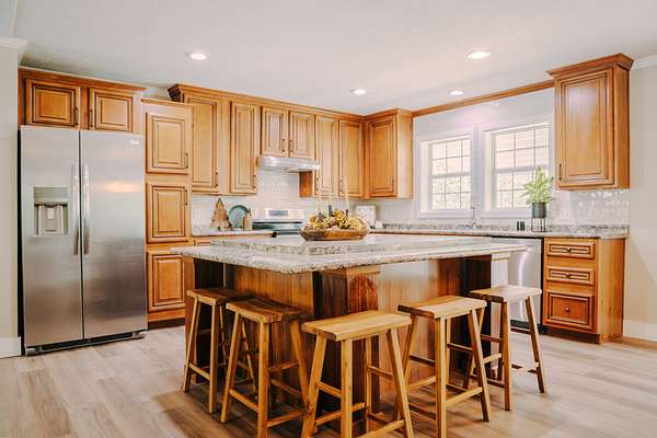 Tucked away at the end of a quiet street, this fully renovated home offers the perfect blend of privacy, space, and modern comfort. Thoughtfully updated throughout with new paint, flooring, lighting, appliances, doors, and hardware, every detail has been refreshed. The heart of the home is the expansive kitchen, featuring abundant cabinetry, a tiled backsplash, and a large island ideal for gathering. Spacious rooms and walk-in closets provide comfort and functionality, while the primary suite boasts a double vanity, garden tub, and oversized closet. Step outside to enjoy multiple large decks, perfect for relaxing or entertaining in a peaceful setting. A cozy den with a wood-burning fireplace and a shed with power complete this well-rounded property.