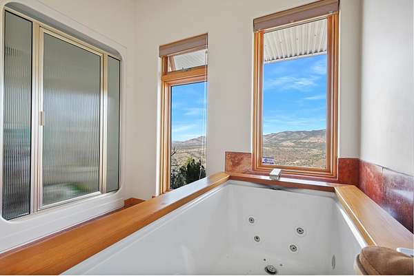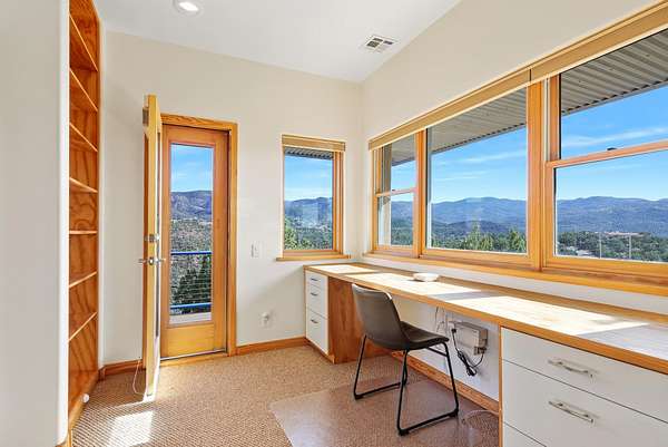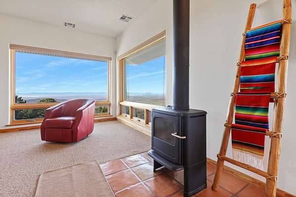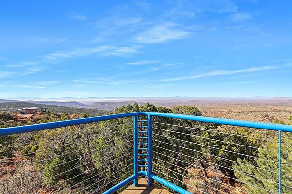 Set at the highest elevation on Red Hill in High Rolls Mountain Park, this architecturally distinguished two-bedroom, two-bath residence presents an extraordinary opportunity to own one of the area's most commanding vantage points. With unobstructed 360-degree views spanning the Tularosa Basin, La Luz Valley, and Lincoln National Forest, the setting is both expansive and entirely private--an outlook that cannot be replicated. Designed by acclaimed architect Richard Jost, the home reflects a deliberate dialogue between structure and landscape. Expansive picture windows frame the surrounding terrain as living artwork, while the open great room, two dedicated office spaces--one of which may easily function as a flexible living space, studio, or guest room--custom built-ins, and solid wood windows and trim convey thoughtful craftsmanship throughout. A Jacuzzi-brand jetted tub and multiple outdoor living areas--including three view decks, an enclosed patio, and a covered porch--extend the living experience seamlessly into the natural environment. Constructed with longevity in mind, the residence features Mikey Block insulated reinforced concrete, a Galvalume metal roof, and an engineered foundation supported by 32 galvanized steel push piers anchored to bedrock, offering exceptional structural integrity with a transferable warranty. Comfort and reliability are enhanced by a Rheem forced-air propane system with refrigerated air, a MORSO wood-burning stove, a newer industrial hot water heater, and a 17 kW backup generator. The property is serviced by a private well conveying with full water and mineral rights, whole-house water softening and filtration, reverse osmosis drinking water, and a septic system. Fiber internet up to 1 Gig is available, supporting modern connectivity in a tranquil mountain setting. The home is being offered furnished, allowing for a seamless, turnkey transition. Included is an adjacent 1.94-acre buildable parcel, presenting the opportunity for enhanced privacy, future development, or the creation of a guest residence, as well as investment potential. Ideally situated between Alamogordo and Cloudcroft with year-round access and proximity to Grandview and Bridal Veil Falls trailheads, this no-HOA offering includes voluntary road maintenance of approximately $400 per year. A rare architectural estate defined by elevation, permanence, and views that are truly unmatched.