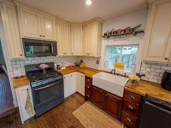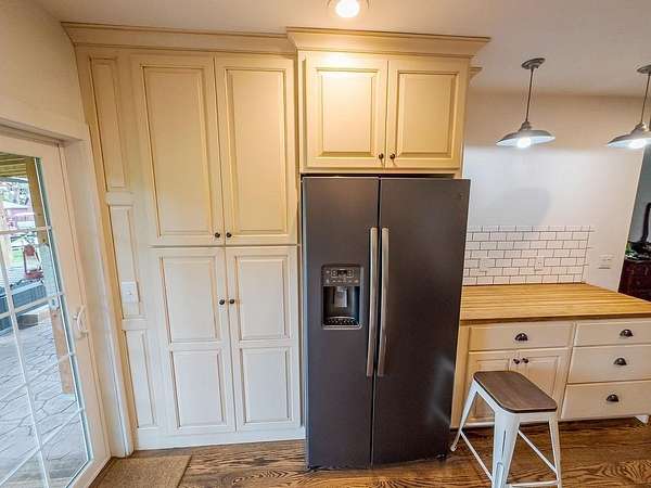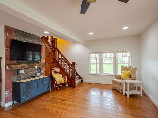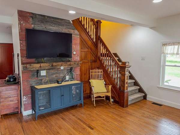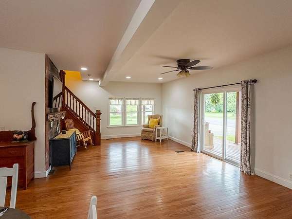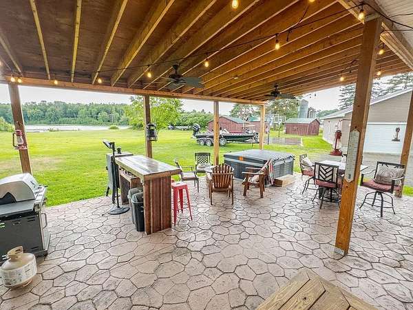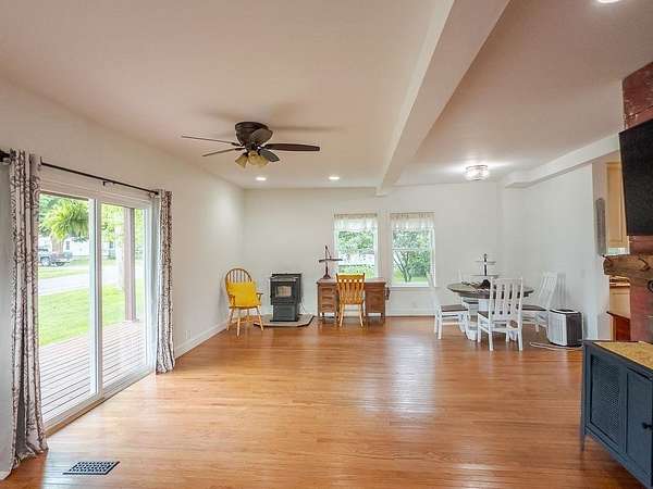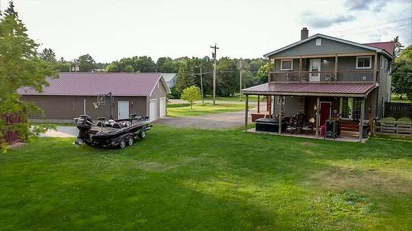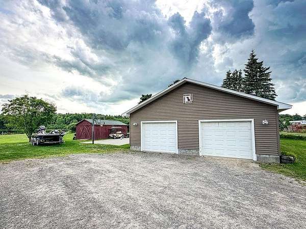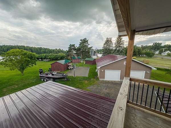 Opportunities like this don't come along often - 1.9 acres on the Oswegatchie River right in the village of Heuvelton. This 4-bedroom, 2-bath home offers a perfect blend of character, craftmanship and thoughtful updates. The beautifully remodeled kitchen showcases Amish-made cabinets paired with warm butcher block countertops and all GE appliances. The first-floor bath also has Amish cabinetry and a stunning walnut countertop. A spacious living room highlights hardwood floors, a Harman pellet stove, and an accent wall created from reclaimed barn wood from the property. A convenient first-floor laundry adds practicality. Upstairs, you will find four bedrooms and a full bath. The primary bedroom opens to a private balcony overlooking the river. New carpets throughout the second floor provide a fresh, updated feel. The outdoor spaces are designed for entertaining and relaxing - enjoy the wraparound porch, stamped concrete patio with bar and hot tub, and a 30 x 40 spray foamed, heated and air-conditioned detached garage. A basketball court sits nearby, while a fenced area and mature apple tree create a perfect spot for pets and play. The property also features an invisible fence by DogWatch. Additional highlights include a on demand water heater, air conditioning, and a carbon backwash filtration and water softener system. Space to play, room to relax, and a view to love - what are you waiting for?