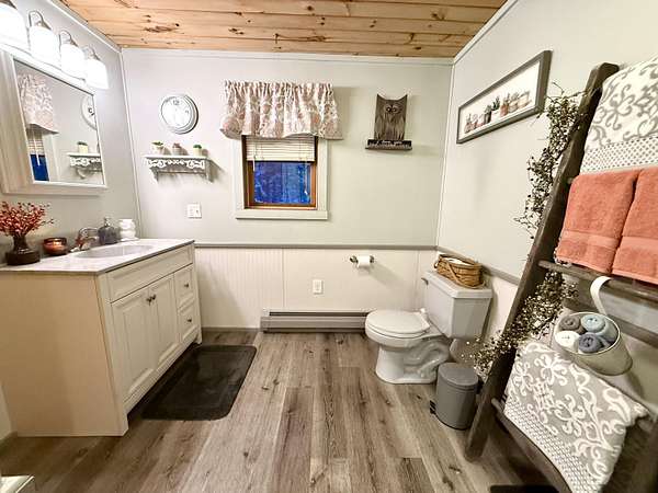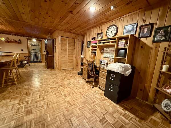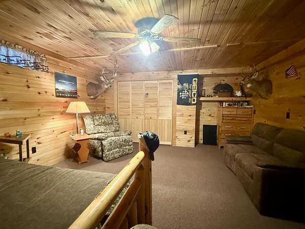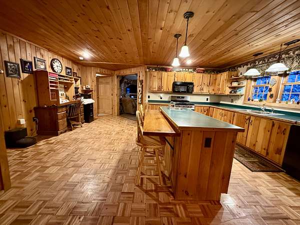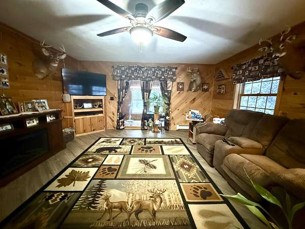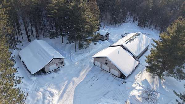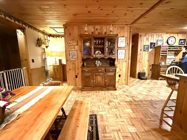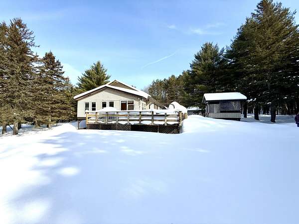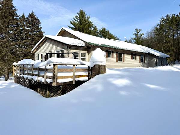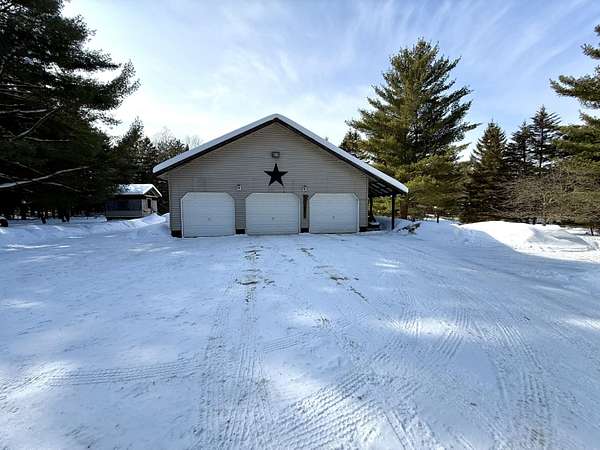 Spacious ranch home set on 8.5 private acres offering the perfect blend of comfort, functionality, and North Country lifestyle. This 2,400 sq ft home features 3 bedrooms, 1.5 baths, and a finished basement providing flexible space for recreation, entertaining, or home office use. Car and hobby enthusiasts will appreciate the exceptional garage space, including a 3-car attached garage plus a heated detached garage/shop ideal for year-round projects, storage, or recreational vehicles, PLUS an additional 1-car garage in the basement, ideal for storage, workshop space, recreational vehicles, or extra parking. Additional highlights include a separate hot tub building for relaxing in every season and a well-maintained 1-bedroom, 1-bath cabin perfect for in-law quarters, guests, or private retreat space. A hunting shack is also located on the property, enhancing the usability of the acreage. Enjoy easy access to nearby snowmobile trails, hiking, and skiing, all just a stone's throw away. This property offers privacy, multiple outbuildings, finished living space, and direct access to outdoor recreation, a rare combination in today's market.