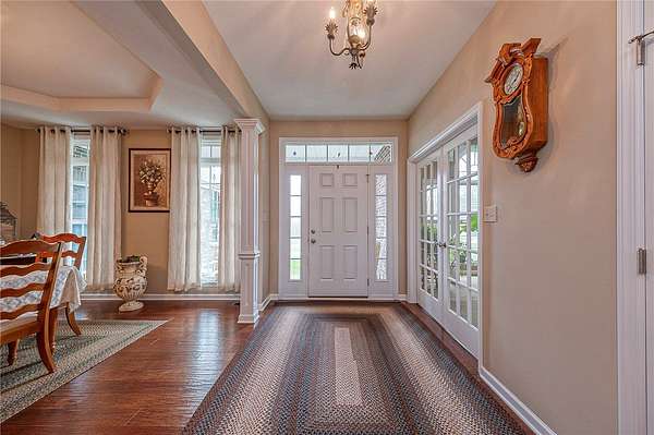 Exceptional custom-built estate set on over 11 private acres, offering the perfect blend of luxury, space, and seclusion. This stunning home features soaring cathedral ceilings and 9-foot ceilings throughout, creating an open and airy feel filled with natural light.