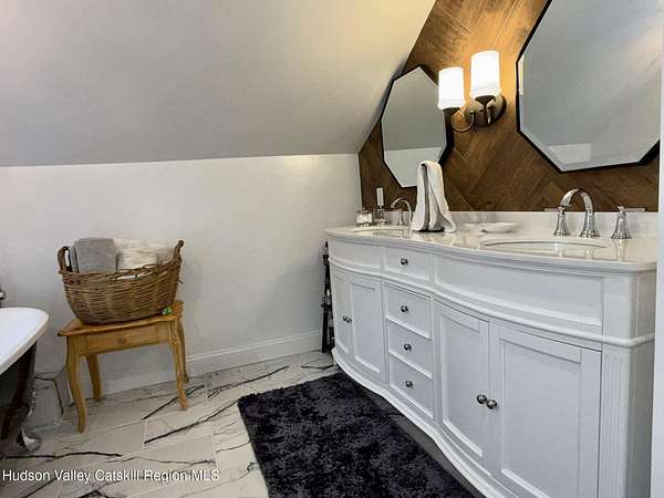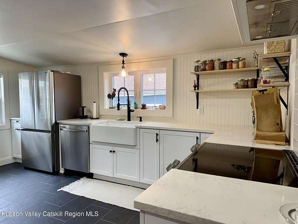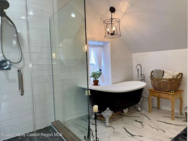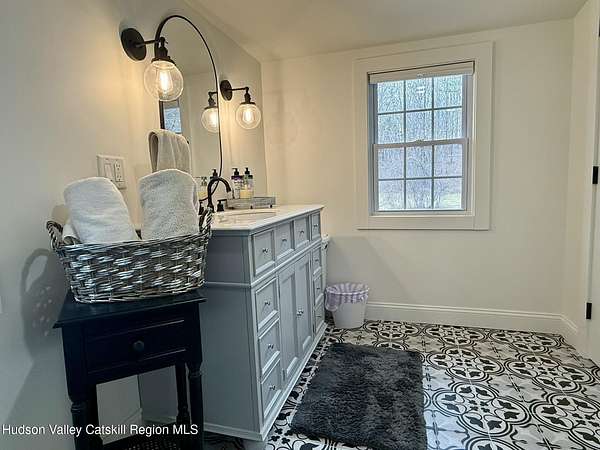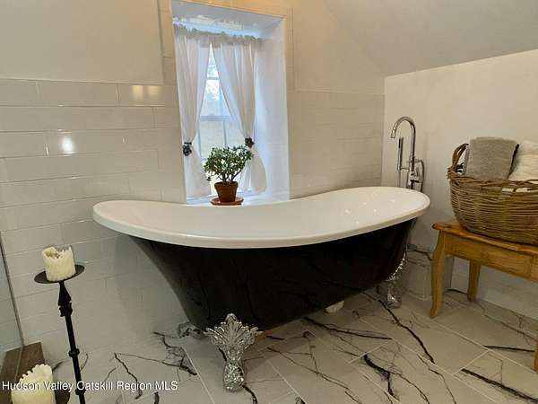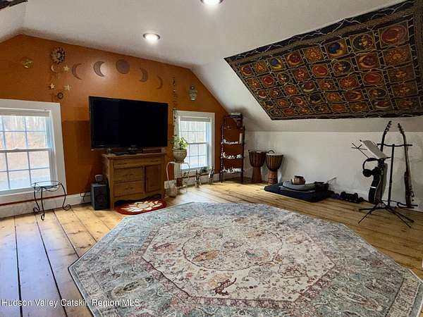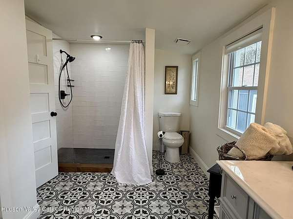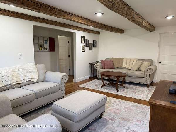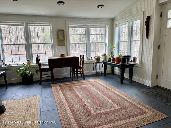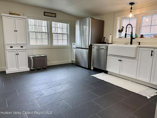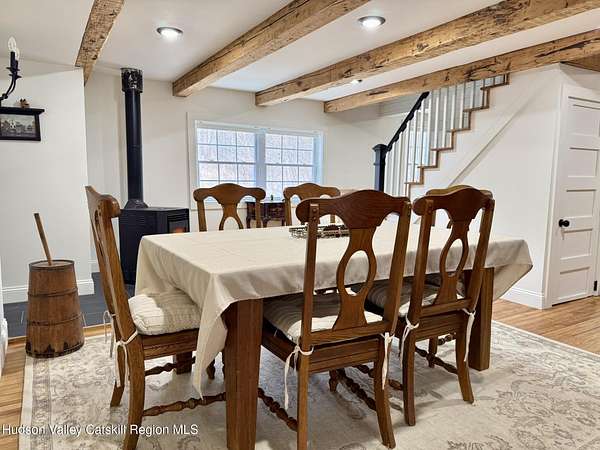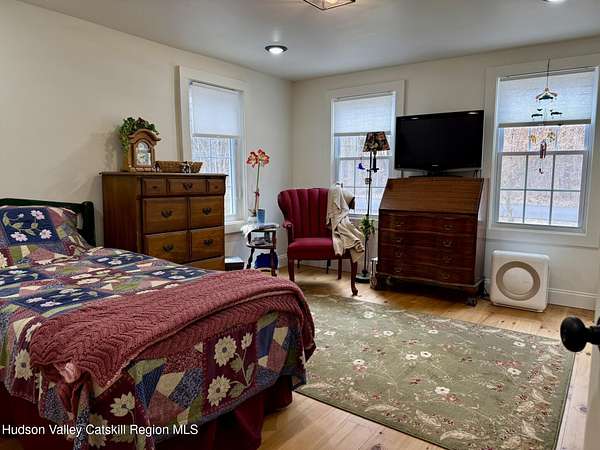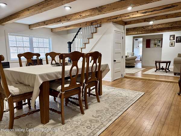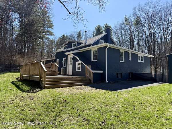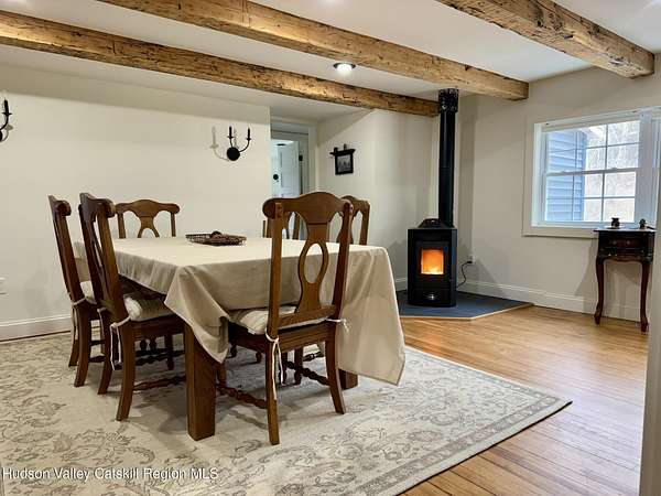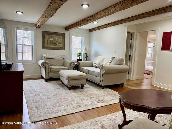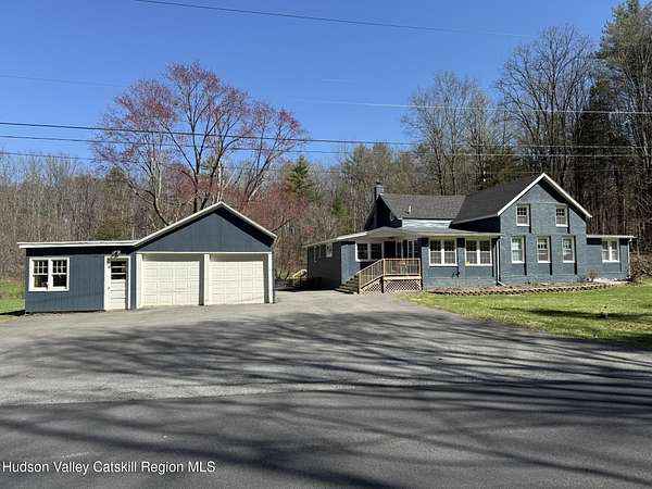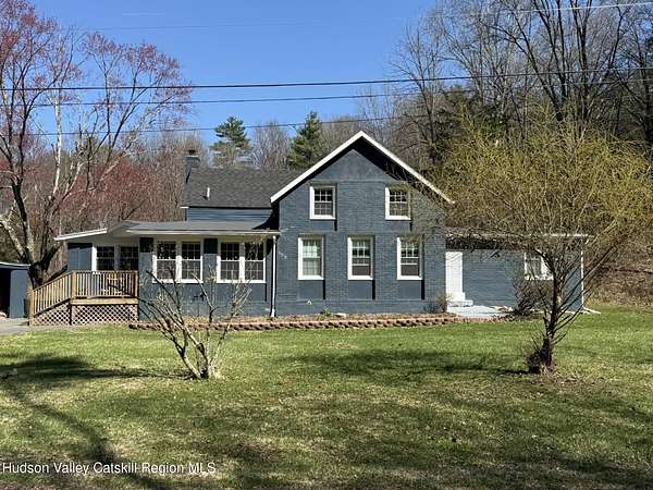 Meticulously maintained and fully renovated in 2024, this spacious Brick home offers 2,600 sq. ft. of beautifully updated living space while set on 3 picturesque acres. Enjoy peaceful living or entertaining from your back deck overlooking Green Creek and an open field with a couple fruit trees. As you enter the home from the front deck, you will be welcomed by a light-filled heated room and then onward seamlessly from room to room. This 5-bedroom, 3.5-bath home blends modern comfort with timeless character. Starting with the thoughtfully designed spacious kitchen which showcases wood cabinetry with soft closing mechanisms, quartz countertops, a large farmhouse sink, stainless steel appliances, and tile flooring--ideal for both everyday living and entertaining. You'll also find hand hewn beamed ceilings in both the living and dining rooms with an open-air concept, hardwood and tiled floors, central air conditioning, and an Ashley pellet stove, perfect for added warmth and ambiance but also benefits as an additional heating source. Also on the main level is 3 bedrooms, a half bath, a spacious bathroom with tiled shower, laundry closet and the primary bedroom offers its own full bathroom with a tiled shower, a lovely soaking tub and walk in closet. Upstairs you'll find a large bedroom, and another beautiful full bathroom with a claw foot soaking tub, gorgeous tiled and glass enclosed shower and large sitting room with a built-in electric fireplace. With five bedrooms plus the extra rooms, this home offers exceptional flexibility to fit your lifestyle. Again, the house was renovated in 2024 so all materials, high end fixtures, lots of solid wood interior doors, appliances, and more are all newer. Another feature is the 2-car detached garage with abundant storage and an additional large room--perfect for a home office, gym, art studio, or creative space. Conveniently located just 3 minutes to NYS Thruway Exit 21B, 20 min. to Village of Catskill, 10 min. to Village of Coxsackie, this home offers easy access to local amenities while being less than 30 minutes south of Albany.