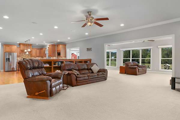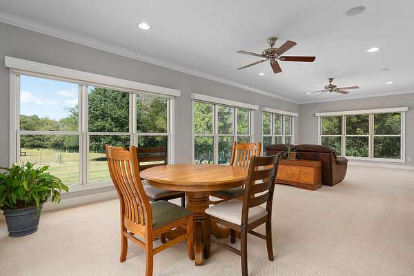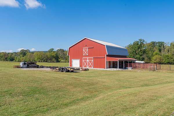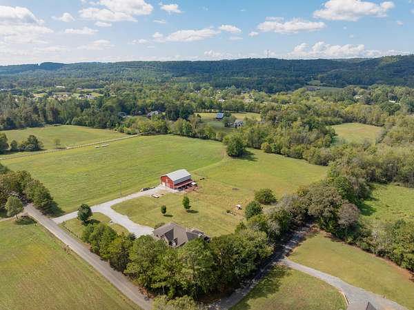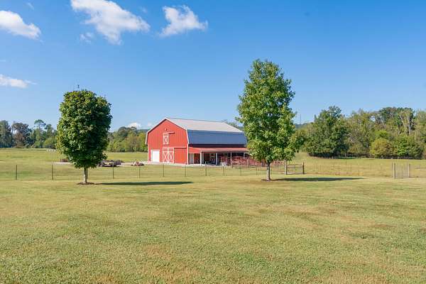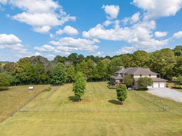 Gentleman's Farm in the heart of McDonald, TN less than 15 minutes to Cleveland and 40 minutes to downtown Chattanooga. This beautiful property boasts a spacious 4 bedroom, 4.5 bath home situated on a 11.83 +/- acres with a 3-car garage, barn, creek, yard, pastures and more. Whether you are simply looking for a primary residence with a lovely setting, a weekend farm retreat or the potential for self-sustainability, then this could be the ideal property for you. The home offers spacious rooms, an open floor plan with a great flow, wonderful natural lighting, recessed and decorative lighting, heated tile floors, great storage and more. Your tour of the main level begins with entry to the 2-story foyer with decorative chandelier, powder room and a curved staircase. The formal dining room is on the left and has an adjoining butler's pantry to the kitchen. The formal living room is on the right and opens to the gathering room. The latter has a gas fireplace, built in shelving and opens to the kitchen and breakfast area, as well as the spacious sunroom - sure to be a favorite spot in the house, as it overlooks the back yard and pasture area and has access to the tiered deck. The kitchen is well appointed and has a large center island with pendant lighting, granite countertops, tile backsplash, soft-close drawers, under-cabinet lighting, stainless appliances and a built-in desk. There is a walk-in pantry in the hallway leading to the mudroom which has a side door to the exterior, built-in cubbies, 2 closets and a pocket door to a full bath that is shared with the office. The office could easily be converted to a main level bedroom given the configuration. Head upstairs where you will find the primary suite which boasts an enclosed, heated and cooled porch overlooking the back of the property. The hallway to the primary bath has a wall of built-in cabinetry and 2 walk-in closets, and the bath has a dual vanity, jetted tub and separate shower.