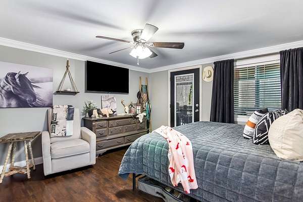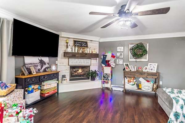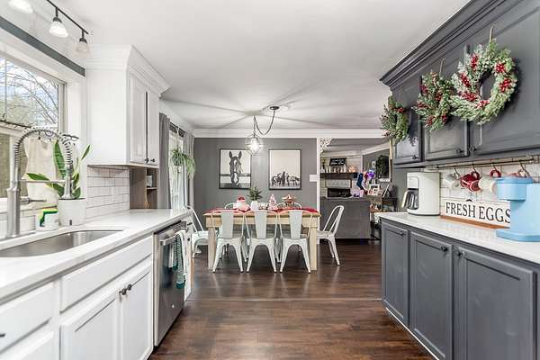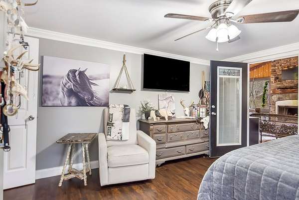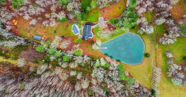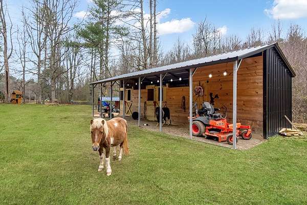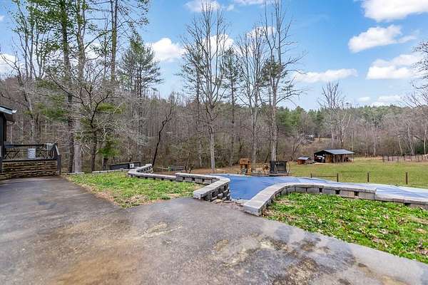 Est $3,354/moStory book setting is the first thing you will notice upon arrival. Nearly 6 acres set up and cross fenced for horses, large fishing pong with Bass, bream and catfish. This is the perfect mini farm, year around home, place to host parties, or STR! You will notice an updated farm house including inground pool with newly finished concrete and retaining wall. All new within the last 8 years: metal roof, gas tankless water heater, stainless steel appliances, kitchen countertops, flooring throughout and tile in the bathroom- so much more. Open concept, one story, and well maintained. 2 stall barn with feed/tack room. Plenty of outdoor entertaining area with wood burning fireplace and screened in porch.