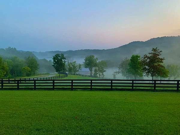 Experience the beauty and privacy of this exceptional Kentucky estate, nestled in the heart of the Bluegrass State with breathtaking panoramic views. A scenic drive through lush farmland guides you to this luxurious, top-quality home, thoughtfully designed by a Dallas architect. Perfect for indoor/outdoor entertaining, the residence features professional decor, custom stonework, exquisite light fixtures, elegant window treatments, and a gourmet kitchen with high-end Sub Zero/Wolf appliances. Modern comforts include; built-in sound system, butler's pantry, office/laundry room, mudroom, and a spacious great room with a wet bar. Enjoy relaxing on the expansive 1,356 sq. ft. wrap-around porch. The property is equipped with a propane back-up generator, a 1,000-gallon buried propane tank, and high speed fiber internet. Located near to the home is the 4-stall Morton horse barn (36X36), featuring a cupola fan, concrete center aisle, wash bay, hot/cold water, heated tack room, stall fans, mats, automatic waterers, and a fly spray system. The original mule barn (with a new roof) offers a fully equipped studio apartment that sleeps six, with a full kitchen, bath, and walk-in closet. The large tobacco barn (also with a new roof) provides two steel storage containers for secure storage, while the carriage barn houses a workshop with multiple electrical outlets and additional storage. High speed internet.