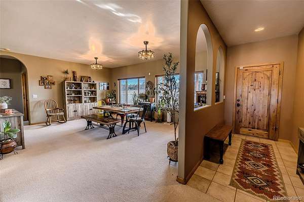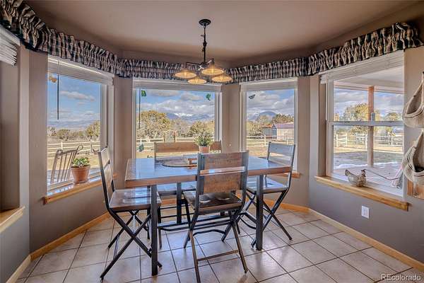 Set on 5 acres close to The Black Canyon of the Gunnison National Park, this property offers privacy and 360° views. The home features a splitfloor plan with 4 bedrooms, 2 bathrooms, and over 2,500 square feet of living space. Multiple living areas include separate living and diningspaces plus a bonus room suitable for music, fitness, crafts, or hobbies. The home includes in floor radiant heat, 9 foot ceilings, a wood stove inthe main living area, and a metal roof. Covered front and back patios (92' x 10' each ) extend the living space outdoors and provide areas torelax and enjoy the views. The property also includes a 2 car attached garage, 1,200 square foot detached shop with concrete floors, electricaland 2 garage doors allowing you to drive through, loafing shed, 10 x 10 storage shed, and a wooded area providing additional space andprivacy.