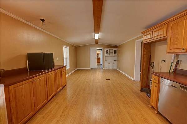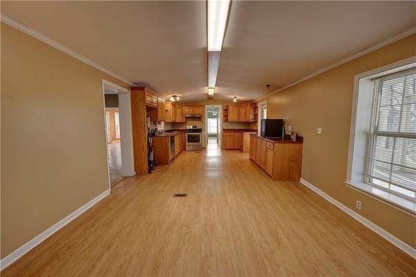 MINI FARM ALERT! BRING YOUR LIVESTOCK TO THIS CHARISMATIC COUNTRY ESTATE ON 5.12+/- ACRES WITH ULTIMATE WORKSHOP, STORM SHELTER, POLE BARN, AND PRIVACY FENCING! Discover a one-of-a kind homestead, featuring a 1989 manufactured home, that was completely built over and around in 1998, adding: 1050+/- SF of additional rooms/space in the home, 950+/- SF detached garage/workshop, large screened-in, porch, and a three-sided pole barn sitting amidst the large hayfield. Drive through bucolic countryside, and turn into an elongated gravel drive that leads the way to the private residence. A six foot wooden privacy fence opens up to the front of the home, offering the FREESTANDING PORTICO, perfect for outdoor entertaining, and leading the way to the front entry foyer and coat closet. To the left is the MASSIVE LIVING ROOM, complete with a romantic CORNER FIREPLACE as its focal point. The 2007 remodeled kitchen is open to the dining area, including a small window which can be opened or closed to the living space, and a built-in China cabinet. Kitchen offers extensive cabinet space, with pull outs that include shelves/baskets for easy organizing. The primary bedroom offers a WALK-IN CLOSET, and opens to the primary bath with two sinks and a huge soaking tub/shower combination. The bath connects to a secondary bedroom, which could also be used as a recreation or office space. The third bedroom and full bath are located on the opposite end of the home, as well as the laundry room, and MASSIVE SUNROOM. The sunroom offers a walk out access door leading to a concrete patio and walkway. Newer metal roofing replaced in 2018, and newer gutters/leafguards in 2020 keeps adding to the many updates this home offers. Plumbing, HVAC, and water heater all replaced within the last six years, as well as new paint and flooring throughout the home. On the back of the home, accessed by the kitchen is a huge screened in porch complete with a ceiling fan and glass door, all overlooking the front grounds, pasture area, and large pole barn. COLOSSAL AND VERSATILE DETACHED GARAGE SITS NEXT TO THE HOME, offerin 950+/- square feet of space, with full electric (up to 220V), climate controlled with new mini split unit, and an extra additional smaller AC/Heat wall unit, and new flooring. The Two roll-up doors have been walled in for complete climate control, but roll doors are still in place for easy conversion. Garage space includes built in storm shelter, and two large loft storage areas, one with walk up stairway. This home/property offers the opportunity for a 5.12+/- acre Mini Farm DREAM, or just your own PRIVATE RETREAT! WELCOME HOME 960 McEntyre Loop!