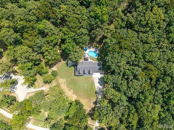 Make your dreams reality with this secluded 10 acre property hosting a stunning 1.5 story home, pool, 30x40 shop, 14x30 equipment shed, pool shed,wet weather creek, and cabin in the woods. Nestled at the end of a private road, serenity greets you as you enter the gate. Step inside your haven of peace, from the covered front wrap porch, entering the open living space of the main level. Spacious kitchen with breakfast bar and eat in kitchen; the cathedral height ceiling and calming view through the rear wall of windows looking to the 15x30 pool +woods. Enjoy your pool in privacy on the back patio (Pergola stays) or the oversized deck. Surrounded by woods and at the end of a non-through-street, you'll remain uninterrupted everywhere on the property. Main floor primary suite introduces updates with a walk-in shower and over sized closet. Main floor laundry-designed with function in mind. Washer/dryer stay and fit the cabinets and countertops seamlessly. Additional mn floor 1/2 bath + garage access. Upstairs are 2 more bedrooms with jack-n-jill style bathroom (separate vanities) and walk-in closets. NEW carpet 8/25. Lower level has an office, possible kitchenette and 4th sleeping, unfinished storage area and living room. Walk out access. Bring your ATV's and plug in your RV at the 30x40 shop with it's own electric service+covered porch with ceiling fans. Additional outbuilding storage, a garden area with rain catchment systems and trails cut to a little cabin in the woods.