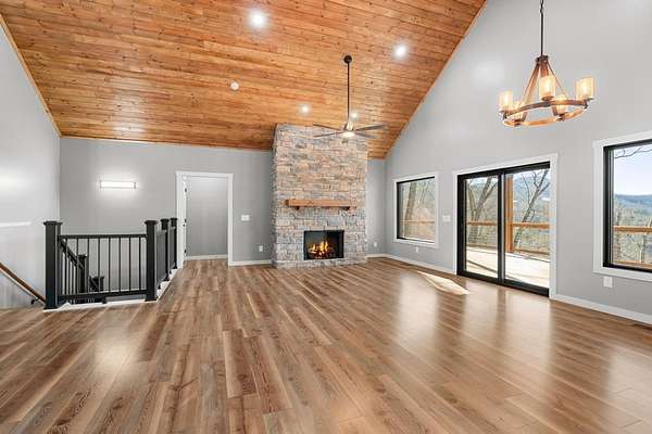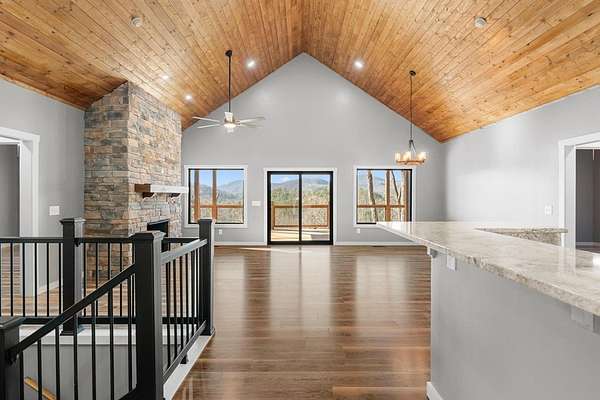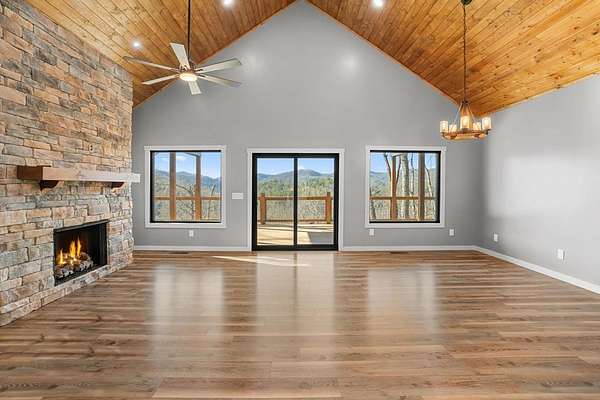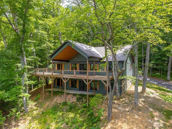 This stunning 5-bedroom, 4-bathroom home is perfectly perched above Lake Glenville, offering magnificent views of the surrounding mountains. As you enter, you'll be greeted by the vaulted tongue and groove ceilings, creating a warm and inviting atmosphere. The main level features 3 spacious bedrooms, including the luxurious master suite with a double vanity, walk-in tile shower, and a soaking tub, providing the ultimate retreat. The lower level boasts an additional living area, along with 2 more bedrooms, including another master suite with its own double vanity and walk-in tile shower. A bonus room downstairs is ideal for a home office or any extra space you may need. Step outside to the expansive deck, where you can take in the gorgeous mountain views, making it the perfect setting for entertaining guests or enjoying peaceful moments outdoors. This home combines comfort, style, and stunning natural surroundings. Woods Mountain POA has deeded lake access nearby. Don't miss the opportunity to check out this beautiful property today!