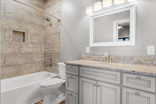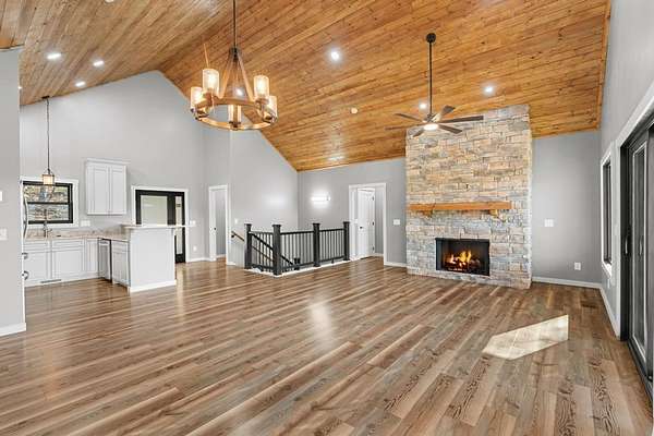 - Bonus Room, Breakfast Bar, Cathedral/Vaulted Ceiling, Ceiling Fans, Ceramic Tile Bath, Living/Dining Room, Main Level Living, New Kitchen, Open Floor Plan, Primary On Main Level, Primary W/Ensuite, Smoke Detectors, Walk-In Closets