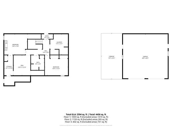- Bathroom x 3, Bedroom x 3, Den, Dining Room, Great Room, Kitchen, Laundry, Living Room