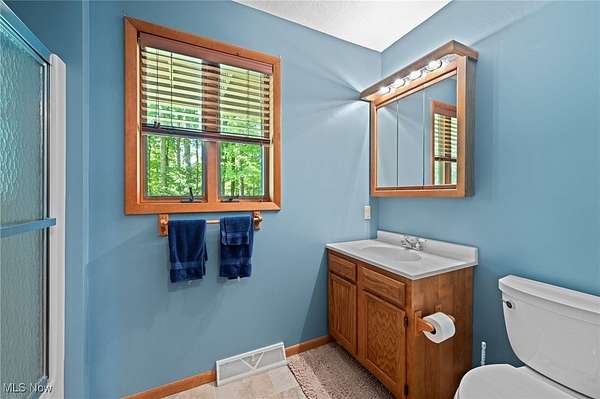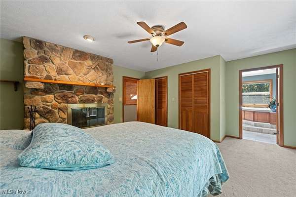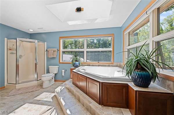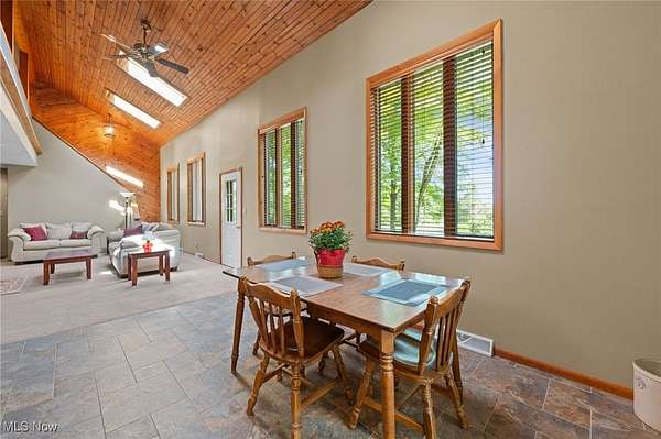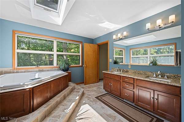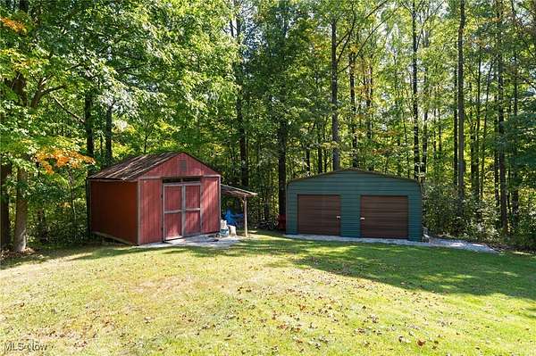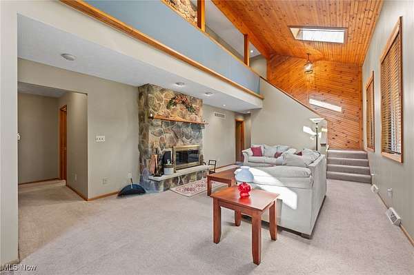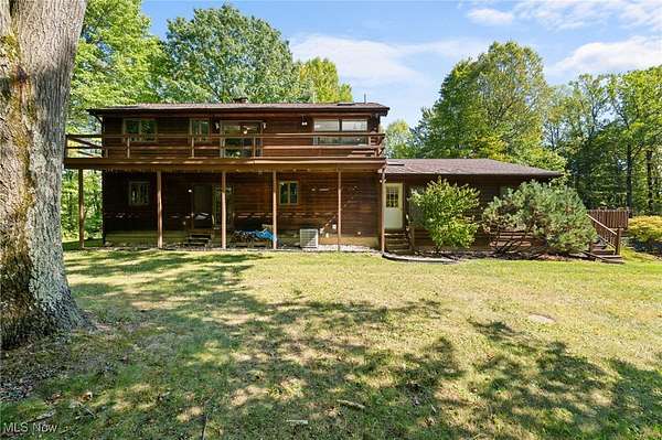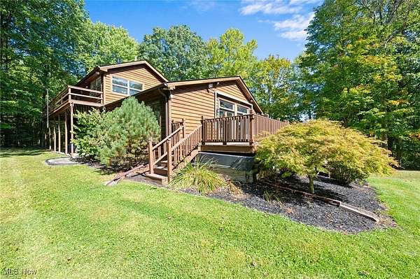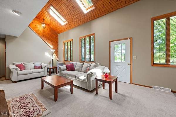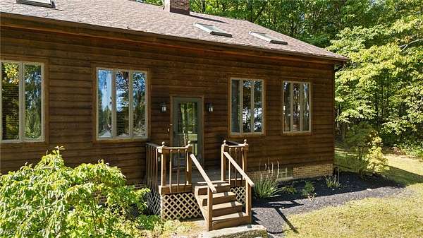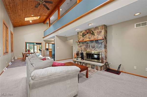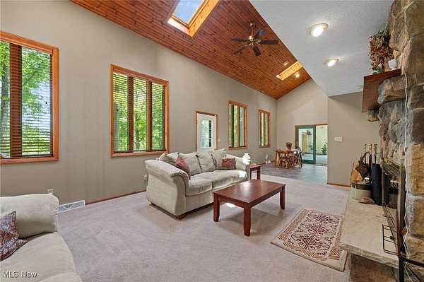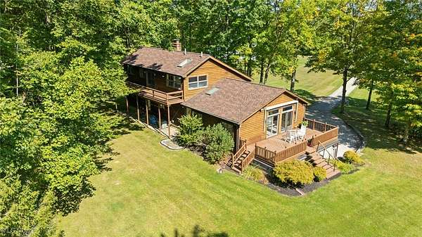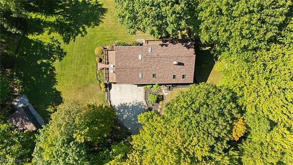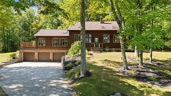 Well Maintained and Quality Custom Built Home nestled on 4+Private Wooded Acres! Secluded and set back off the cul-de-sac, this one-owner home offers great living space with 3 Bedrooms, 2 Full Baths, open floor plan with plenty of room to grow! Vaulted Living Room with tongue & groove wood ceiling, multiple skylights and 2-story stone wood burning fireplace. Eat-in Kitchen with abundance of cabinets, granite counters, all appliances stay including double oven & gas cooktop and open to Dining area. Huge Great Room with vaulted beamed ceiling, built-in oak bar and shelving, skylights, wired for 5.1 home theater surround, and french door to wood deck with SunSetter awning. 1st floor Bedroom plus Office/Bedroom with double-sided fireplace & slider to backyard. 2 Bedrooms on 2nd floor includes Spacious Master Bedroom with stone wood burning fireplace, double closets & private balcony access. Master Bath with double sink granite vanity, jetted tub & separate shower. 1st floor laundry. Unfinished basement with over 1200 sqft of potential living space for your family, currently used as workshop & storage. Central air. New Roof, new HWT & pressure tank in 2025. Concrete driveway with 3+car attached garage plus storage shed & steel outbuilding. Beautifully kept manicured yard and surrounded by mature trees, enjoy your personal sanctuary with peaceful views of nature & wildlife out every window or from the expansive deck & balcony. Just minutes to shopping, restaurants, schools, parks and easy freeway access!