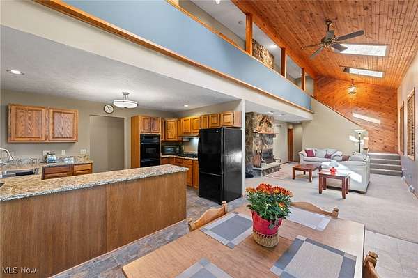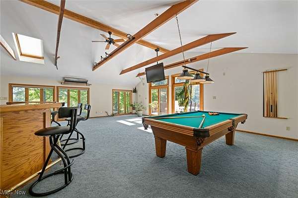 - Bar, Beamed Ceilings, Ceiling Fans, Eat In Kitchen, Granite Counters, Recessed Lighting, Vaulted Ceilings, Wired For Sound