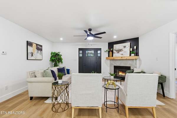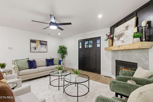 Welcome Home! A fully renovated basement rancher tucked away on 2.04 private acres, where modern comfort meets peaceful East Tennessee country living. From the moment you arrive, you'll fall in love with the long, secluded wrap-around driveway that guides you through mature trees, two charming man-made ponds, and the kind of serene landscape buyers dream about. At the top of the drive, a picture-perfect covered front porch oasis invites you to slow down, sip coffee, and soak in the tranquil views that only country living can provide. Step inside and discover 3 bedrooms, 3 bathrooms, and a spacious open-concept layout designed for both comfort and style. The eat-in kitchen is a true showstopper, featuring custom-built cabinetry, quartz countertops, stainless steel appliances, a porcelain tile backsplash, and a cozy, custom-built breakfast nook perfect for family meals or morning routines. The updates continue with beautifully tiled bathrooms upstairs, offering a fresh and modern feel. The living room showcases a custom wood-burning fireplace framed by gorgeous board-and-batten detailing an inviting centerpiece for those chilly Tennessee evenings. Downstairs, the fully finished basement delivers one massive open area with endless possibilities. Create a media room, game room, home office, gym, or all of the above. The space is yours to imagine. A two-car garage completes the lower level, offering both storage and convenience. Outside, no detail was overlooked. Enjoy brand-new landscaping, fresh steps leading to the entry, new wood posts, and an elegant iron-rod banister that elevates the home's curb appeal from every angle. If you're searching for a beautifully renovated home with privacy, acreage, character, and space to grow 9601 Cannon Lane is the rare East Tennessee gem that checks every box. Book your showing today!
