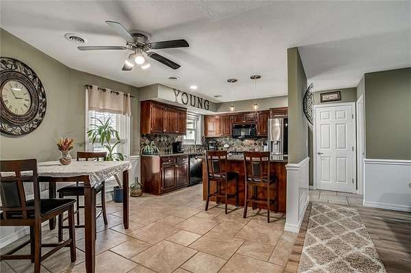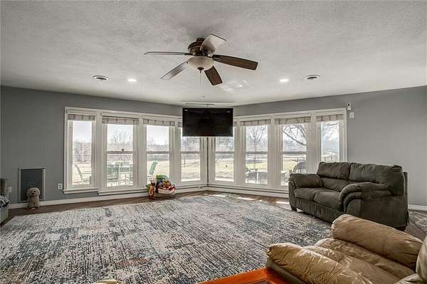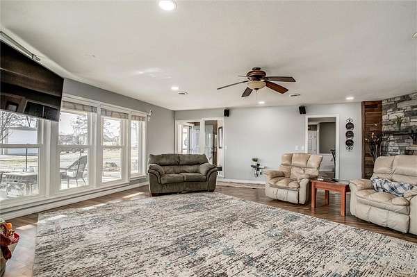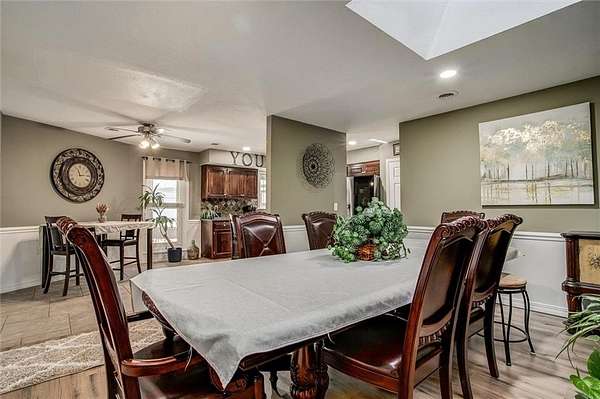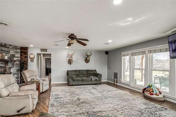 One of those rare opportunities to own a beautiful home on 5 scenic acres in the highly sought-after Liberty School District. Tucked away from the road, this charming earth-contact home offers both privacy and stunning views of the surrounding acreage and pond. The thoughtfully designed floor plan fills the front living area with natural light, thanks to an abundance of windows that frame the peaceful outdoor setting. The updated kitchen features granite countertops, newer appliances, and heated floors. There's plenty of room for both a casual kitchen table and a large formal dining area-perfect for hosting holidays, celebrations, and gatherings of any size. The home offers three comfortable bedrooms, including a spacious primary suite at the back for added privacy. The adjoining spa-like bathroom, also with heated floors, showcases a beautifully updated shower, creating a relaxing retreat at the end of the day. Step outside to enjoy the covered porch, an ideal spot for morning coffee or evening relaxation while watching kids or pets play safely in the fenced yard area designed just for them. For hobbyists, travelers, or anyone needing serious storage, the impressive shop is a standout feature-easily accommodating an ultra-large fifth-wheel trailer and truck, with room to spare for a boat or side-by-side. There is also a full-size pickleball court marked in the concrete flooring. Backing to a neighboring horse ranch, this property offers a truly special rural charm-you'll often see horses being ridden along the drive. The stocked 14 ft deep pond sets the stage for peaceful afternoons and cozy evenings. A walking path circles the property, complete with a bridge over the pond that connects to the back fenceline, making it easy to explore and enjoy every inch of this beautiful land.