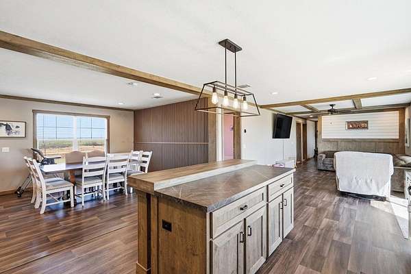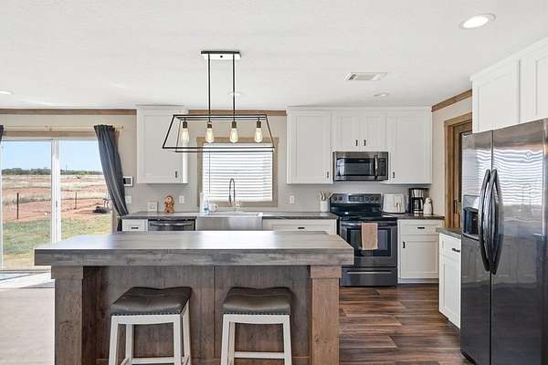 The perfect blend of modern comfort & country living with this brand-new 4-bedroom, 2-bath home set on just over 14 acres. Thoughtfully designed with space and functionality in mind, this property features two spacious living areas, ideal for entertaining guests or creating a separate family retreat. At the heart of the home, you'll find a beautifully designed kitchen complete with a custom pantry, offering ample storage and organization for everyday living. The open layout flows seamlessly, creating a warm and inviting atmosphere throughout. Step outside and take in everything this property has to offer—from 2 tanks for added utility, to a well-equipped shop ready for projects, storage, or hobbies. The private water well ensures self-sufficiency, while the excellent perimeter fencing provides security and peace of mind. A separately fenced backyard offers the perfect space for pets or outdoor gatherings. With an attached 2-car carport and room to roam, this property has it all.