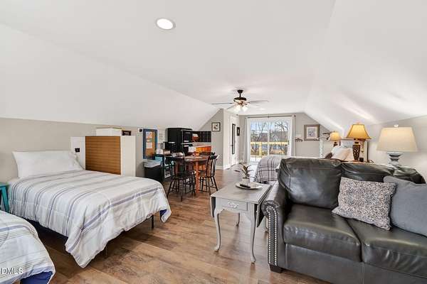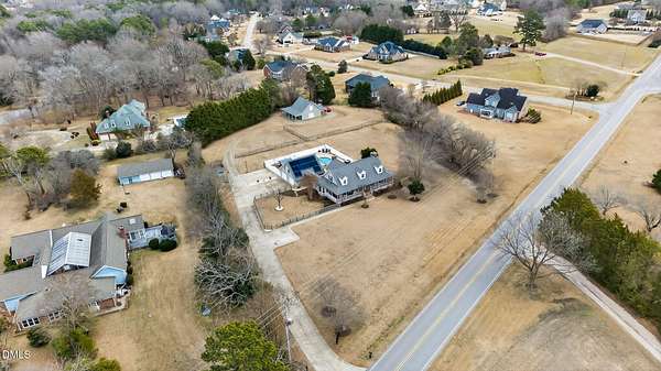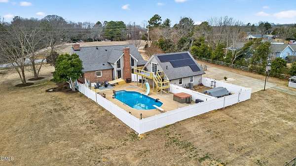 Rare opportunity to own a private 2.5-acre estate with multiple structures, income potential, and modern energy efficiency that is also conveniently located just minutes from everyday life. Tucked away with extensive road frontage and an exceptional setback from the road, this unique property offers a peaceful setting with a long private driveway, expansive lawn space, and remarkable flexibility for a variety of lifestyles. Despite the quiet, acreage setting, the home is located less than 10 minutes from Costco, Publix, shopping, and dining, creating the perfect balance of privacy and convenience. The main residence offers approximately 2,830 square feet with a welcoming wraparound porch and thoughtfully updated interior spaces. The home features 3 bedrooms and 2.5 baths, plus a large bonus room/closed loft currently used as an additional bedroom. The first-floor primary suite includes walk-in closets, private porch and pool access, and a cozy gas fireplace. The primary bath has been updated with a freestanding soaking tub, walk-in shower, and shiplap accent walls, creating a relaxing retreat. Upstairs, you will find two additional bedrooms, a flex space/bonus that is currently being used as a bedroom, and a shared full bathroom. A detached garage and apartment building adds approximately 750 additional square feet of flexible living space. The oversized 2-car garage is heated and cooled and features an epoxy floor, custom shelving, and a workbench. The lower level also includes a bright flex room with built-in cabinetry and a full bath, ideal for a home office, gym, studio, or hobby space with convenient pool access. Above the garage is a fully heated and cooled studio apartment with a kitchenette, half bath, private entrance, and large balcony overlooking the barn and backyard. Previously used as a short-term rental, this space offers excellent potential for guest accommodations, extended family, or supplemental income. Seller can provide rental history. Outdoor living is equally impressive. The property includes a large 8.5-foot-deep in-ground pool with slide and diving board, hot tub, and extensive pool decking, creating a perfect space for entertaining and relaxation. Approximately 1.75 acres of maintained lawn provide abundant space for recreation, gardening, or outdoor activities. A two-story barn with power and water and a floored upper level adds exceptional versatility for storage, hobbies, animals, or workshop use. With minimal HOA restrictions, the property offers flexibility for horses, chickens, goats, or hobby farm living. Major system updates provide peace of mind, including all roofs replaced in 2020, three HVAC systems with updated ductwork (2020), a tankless gas water heater, and a 36-panel solar system (13.4 kW) installed in 2021. Additional improvements include updated plumbing with PEX, newer windows, upgraded lighting, and extensive exterior improvements in 2026 some to include new pool decking, all new deck and stairs at guest apartment, new dormers, wrap around porch newly stained and more. List of all upgrades/improvements in home. Additional features that make this house unique include a wraparound porch, multiple decks, a covered breezeway connecting the garage to the home, fenced areas for pets or animals, an electric dog fence surrounding the property, and ample parking for vehicles, trailers, or equipment. No restrictions allow you to have your boat and RV as well! This Farmhouse has been extensively upgraded over time and offers the rare combination of privacy, land, flexible living spaces, income potential, and modern systems, while being close to everyday conveniences.