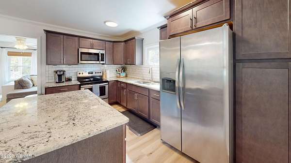 Step inside this beautifully updated 4-bedroom, 2-bath ranch home offering an open layout, central air, and a newer roof. The main floor features 3 spacious bedrooms, an updated kitchen with granite countertops, and a modern bathroom with tile floors, tiled shower, and a double vanity. A bright sunroom adds even more living space and overlooks the back yard and patio. The finished lower level provides a 4th bedroom, 2nd bathroom, spacious family room, large laundry room, kitchenette, and a second sunroom with a brick oven. Outdoors, enjoy 2 peaceful acres from the 29'x11' covered front porch, a oversized two-car garage, carport, and space for RVs and boats. Move-in ready with comfort, updates, and charm! Schedule your showing today.