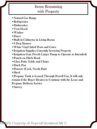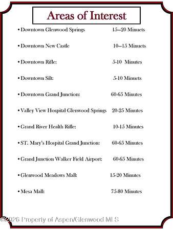 From I-70 Silt Exit# 97 head North to roundabout. Head West onto Main Street. Turn right onto North 1st Street. Turn left on Silt Mesa Road. Turn right onto Harvey Gap Road. At the three way split turn left onto County Road 266 (Asguard). Follow County Road 266 to the end. Property is at the end of County Road 266 on the left.
