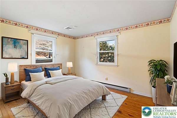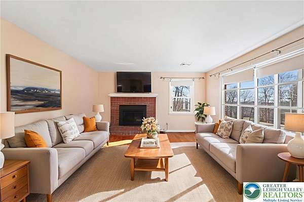 Get ready to fall in love with this 3 bedroom ranch home, situated on over 2 1/2 acres in Coopersburg and within the Paslisades School District. Enjoy the convenience of one-floor living, a delightful eat-in kitchen with full table space, beautiful hardwood floors, living room with propane gas fireplace, and an additional sunken family room with vaulted ceilings, skylight and sliding doors to the rear yard. The finished lower level expands the living space with a large recreation room, a second full bath with jetted tub and shower, and ample storage. Additional highlights include an oversized attached garage, freshly paved driveway, utility shed, zoned heating and central AC. Recent updates including a new roof (2018), new water heater (2023), new well pump and filtration system (2025), and electrical improvements. A peaceful setting with open views completes this versatile property. Convenient to shops, schools, restaurants and all major roadways. This home is a rare find in a sought-after location, providing a unique opportunity to enjoy the beauty and charm of Coopersburg. Don't miss the chance to make this cherished home your own!