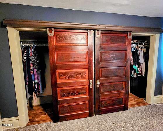 Charming two-story home with original hardwood floors and beautiful woodwork with the modern conveniences not found in most older homes along with 3.15 acres close to town and a 3 stall garage. Main floor laundry, a 3/4 bath, a comfortable size kitchen with an island, and a multi purpose room that could be used as an office/den or relaxing-reading space are some of the extras that are unique in this home. Upstairs you will find another full bathroom and 3 bedrooms and a JULIET BALCONY. The primary bedroom has TWO closets. The traditional closet of an older home and a unique closet built in by the current home owner. Doors original to the home found in the basement were refurbished and transformed into gorgeous barn doors that make the closet a feature wall with custom hand painted artwork that adorns the wall when the doors are closed. The artwork can be modified or painted over, whichever you prefer. The basement is unfinished and can be used as you wish. 3.15 acres allows you to have your horses, chickens, pigs, dogs or outdoor recreation area all right there. Call to see this home today!
