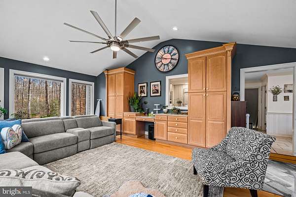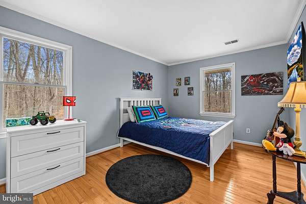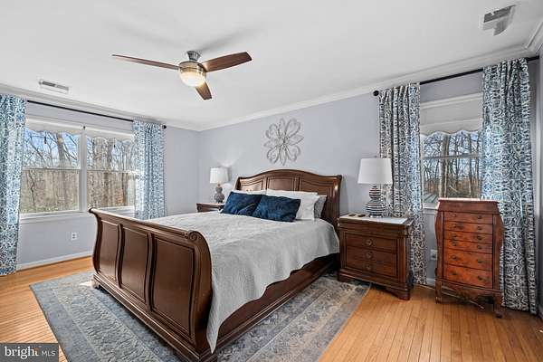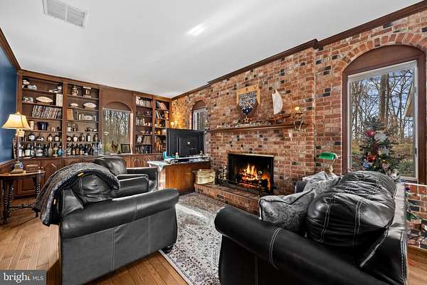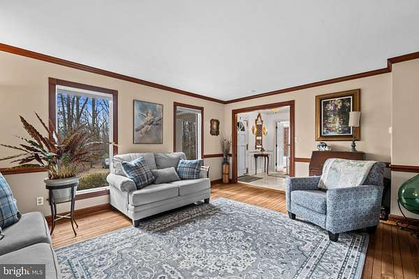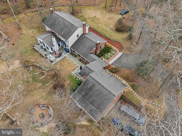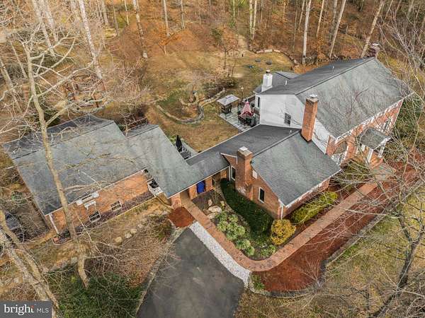 Exceptional opportunity for multi-generational living or rental income on over 5 private, fully fenced, acres in the heart of Manassas, located on a quiet cul-de-sac. This stately brick single-family home offers privacy rarely found with town convenience. Main residence features formal living and dining rooms with pegged hardwood floors, crown molding, shadow box detailing, and Andersen windows. Library with cherry cabinetry, exposed brick wall, and wood-burning fireplace. Kitchen includes wainscoting, antique Jerusalem limestone tile floors, glass-front cabinetry, warming drawer, convection oven, backsplash, and pendant lighting. Sunroom with wall of windows, built-ins, and Italian Carrara marble fireplace. Upper level offers hardwood floors throughout, three bedrooms plus a spacious primary suite with luxury spa bath featuring soaking tub, separate shower, and double vanities. Walk-out basement includes open recreation space and storage. Connected by a breezeway is a fully renovated cottage home-ideal for in-law suite, guest house, or rental-featuring new HVAC, a fully renovated kitchen with new appliances and countertops, hardwood floors, one bedroom, and one full bath. Two-car garage, with new workshop and epoxied flooring located beneath the cottage for new projects. Outdoor features include professional landscaping with lighting, Trex deck, and flagstone courtyard. Rear wooded acreage provides access to trails, streams, and river. All HVAC systems and septic systems updated within the past two years. Rare estate offering privacy, flexibility, and income potential.