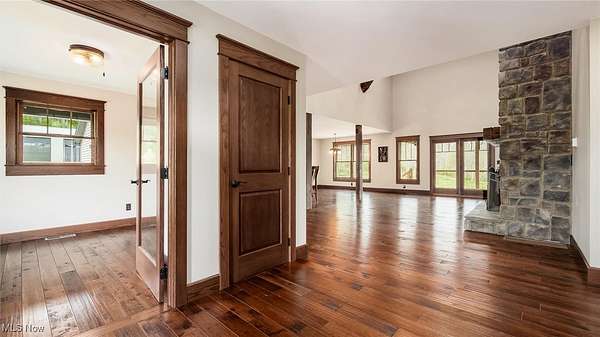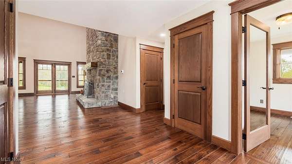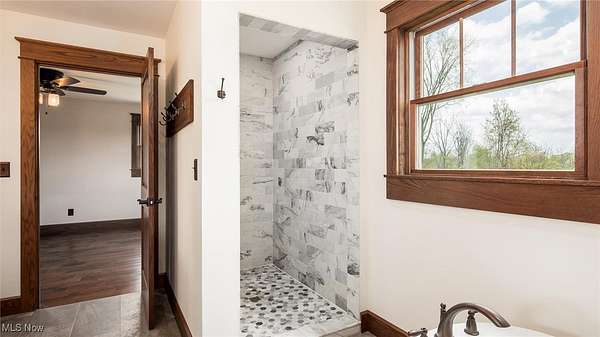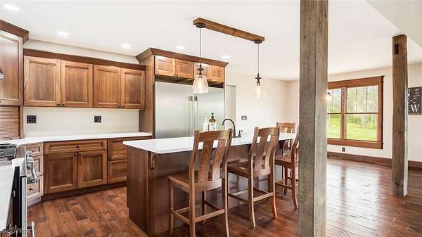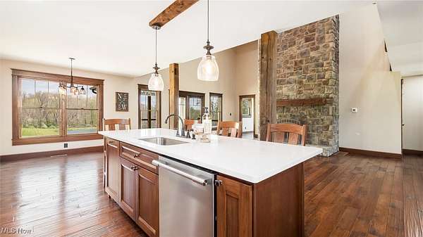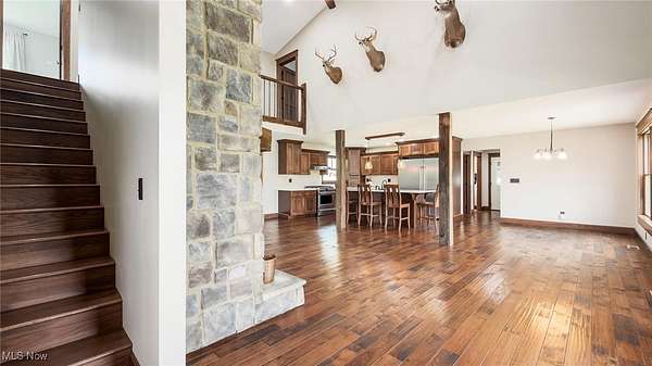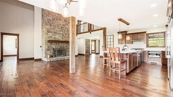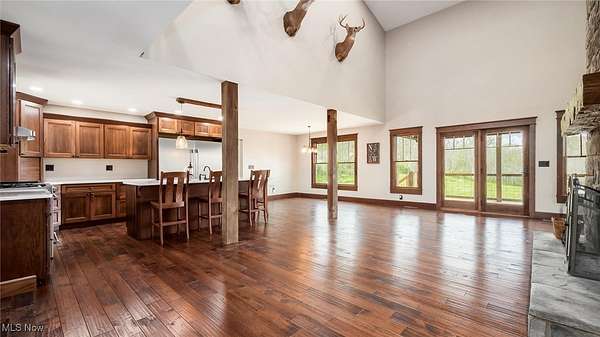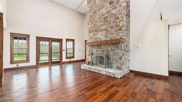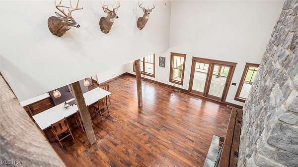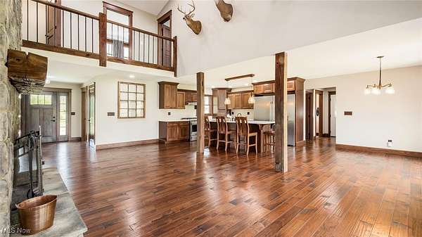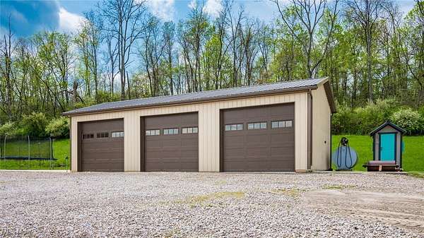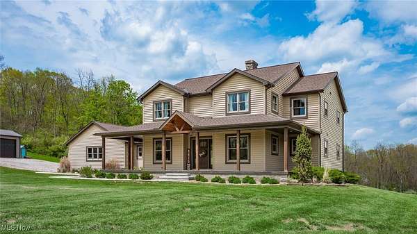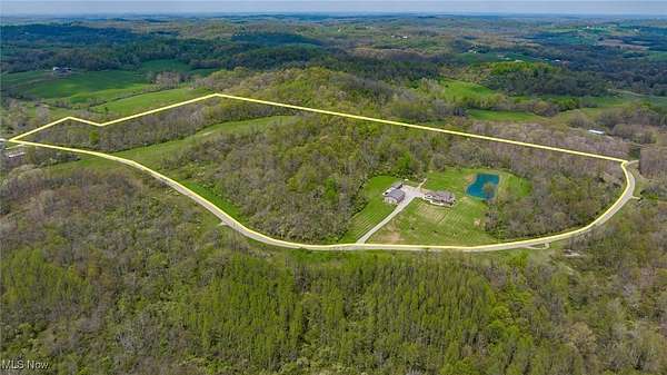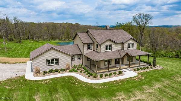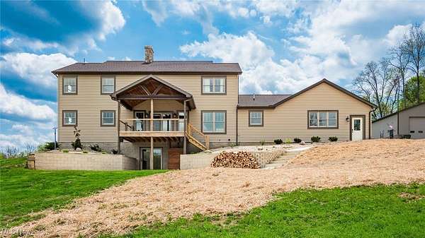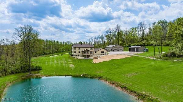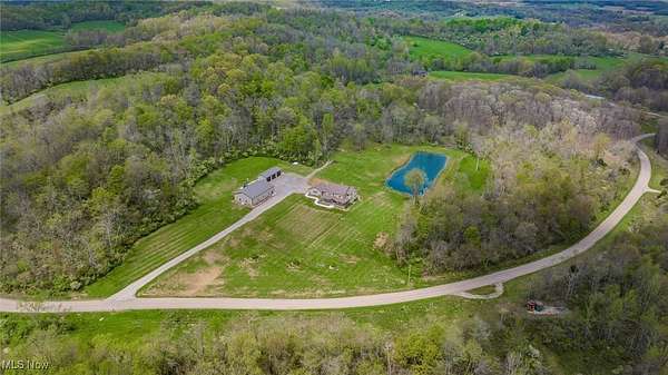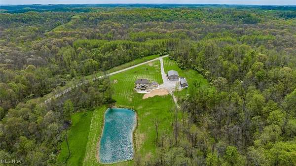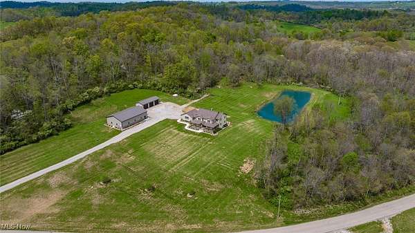 Welcome to your dream country retreat! Nestled on 67 breathtaking acres of rolling landscape in picturesque Blue Rock, this extraordinary property offers the perfect blend of luxury, comfort, and outdoor adventure. The beautifully crafted 5-bedroom, 2.5-bath home features high-end finishes throughout. Step into the main living area where you are greeted by soaring 22 foot vaulted ceilings, a striking stone fireplace, and beautiful views from every window. The first floor primary suite offers a peaceful retreat with marble shower, soaking tub, and walk in closet. The gourmet kitchen features quartz countertops, separate commercial grade refrigerator and freezer, and a walk in pantry. Also on the main level you will find a private office and versatile flex space. Upstairs, 4 bedrooms (2 rooms could be used for a playroom, extra living area, or movie theater) and full bath provide ample space for family and guests. The property includes a private, stocked 1-acre pond - ideal for fishing, kayaking, or simply relaxing by the water's edge. An outdoor shower by the pond offers a refreshing touch after a day spent outside. Radiant floor heating is available in the basement for year-round comfort, and a whole-house generator ensures peace of mind no matter the season. Car enthusiasts, hobbyists, or entrepreneurs will appreciate the impressive 40x60 shop with 14-foot ceilings, radiant floor heating, and comfortable finished living space with full bath, laundry, kitchen and a loft style sleeping area. Plus, a separate 20x40 three-bay detached garage offers even more room for vehicles, equipment, or workshop needs. Outdoor enthusiasts will love the property's incredible location -directly across the street from 1,495 acres of ODNR state-owned land, providing endless opportunities for hiking, hunting, and exploration. Schedule your private showing today and discover the lifestyle you've been dreaming of! Don't miss this once in a lifetime opportunity to own a piece of paradise!