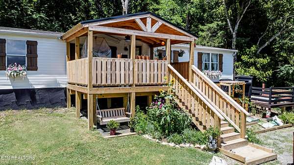 East TN Mini-Homestead on 2.3 Acres -- 9615 Smoky Row Road Embrace a serene, move-in ready lifestyle on 2.3 secluded acres in Strawberry Plains. This beautifully remodeled 3 bed, 2 bath manufactured home (1,524 sq ft) blends rustic charm with modern upgrades--perfect for homesteaders, gardeners, or anyone craving quiet privacy. Step inside to luxury vinyl plank floors (2023), fresh paint, shiplap accent walls, and a custom barn door. The master bath boasts a cedar plank ceiling and full tile shower, while both bathrooms showcase sleek modern finishes. The flex room offers space for a media room, home office, or play area. The cozy kitchen features a center island and a 2023 dishwasher. Key system updates include a new roof (2021) with two added vents (2024) and upgraded HVAC components (blower motor and coils in 2025)--ensuring comfort in hot East TN summers. Outside, enjoy the fresh 12 * 16 covered metal front deck, complete with a ceiling fan and outlets--ideal for entertaining or quiet weekends. A second deck plus a boxed greenhouse (ready for setup) overlook fenced raised-bed gardens--ready for growing veggies or flowers. Three outbuildings include a large wired building, perfect for a workshop, ADU, or potential rental unit. Septic pumped in 2023 and 2025, with a new maintenance riser. Additional features include underground utilities, an updated laundry, a play platform with slide, and a cleared yard with wooded areas for recreation or hunting. Quiet, low-traffic neighborhood. Bonus: If Buyer uses my Prefered Lender, Deb Applegate/Fairway Independent Mortgage Corporation, Buyer's may qualify for a free appraisal. Ready for your East TN homestead dream? Schedule your showing today.