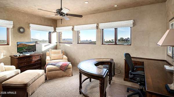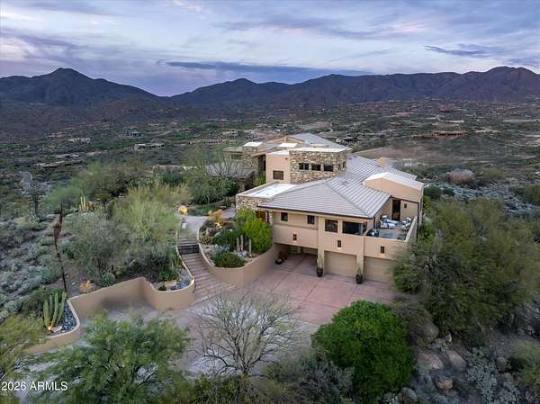 Desert Mountain Golf Membership available. Exquisitely sited on Lone Mountain within the Guard-Gated Community of Desert Mountain, this Bob Bacon-designed residence captures sweeping vistas of the Geronimo, Cochise, and Chiricahua Golf Courses, framed by Four Peaks to far East with Apache Peak sunrises, Continental Range to Carefree's Black Mountain sunsets. Ideally positioned near the Carefree Ranch Gate for effortless access. Interior highlights include an Exercise Room, Home Theater w/Wet Bar, two Offices, multiple Storage Rooms, generous Game/Family Room w/Wet Bar, and attached 2-Bedroom Casita + Living Room. Multiple patios and decks showcase stunning views. Meticulous quality and attention to detail throughout. A truly one-of-a-kind exceptional home for the most discerning Buyers