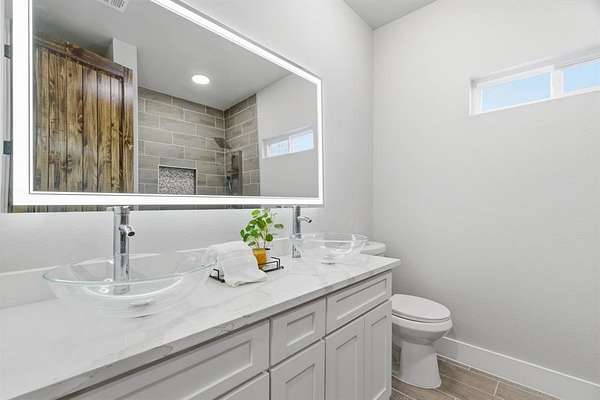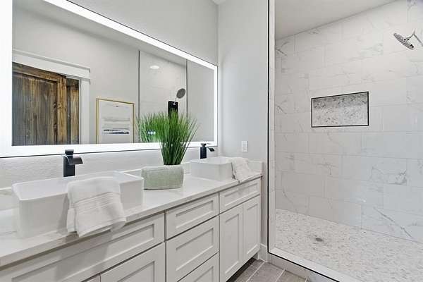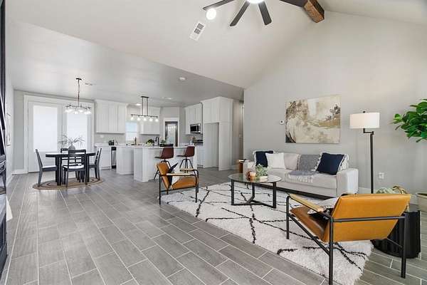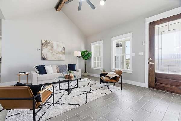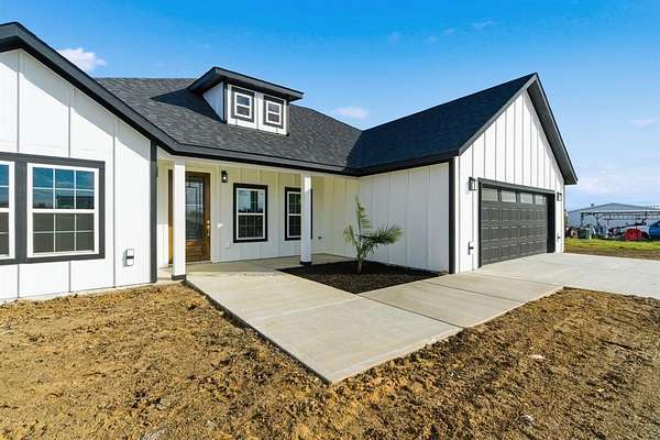 Experience modern country living at its finest in this brand new custom home set on 1.7 acres just outside city limits. With no HOA and no restrictions, you'll enjoy freedom, privacy, and room to make the property truly your own. Step inside to an inviting open floor plan designed for both everyday comfort and effortless entertaining. The chef's kitchen is the showpiece featuring double islands, two full kitchen sinks, a built-in wine fridge, and seamless sightlines throughout the main living area. Durable tile flooring runs throughout the home, adding style and easy maintenance. Retreat to thoughtfully designed bathrooms complete with LED-lit mirrors, multiple shower heads, and enjoy the warm presence of 8-ft stained pine wood doors that elevate every room. The French doors off the dining area open to a large covered patio with a built-in grilling station, creating the perfect indoor-outdoor lifestyle. Outside, you'll find an oversized two-car garage, an extra-long driveway, and all the space you need for parking, projects, or future additions. This is the rare blend of new construction, acreage, and unmatched flexibility, your opportunity to own a home that feels luxurious, functional, and free from limitations.