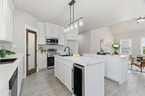 - Decorative Lighting, Kitchen Island, Open Floorplan, Pantry