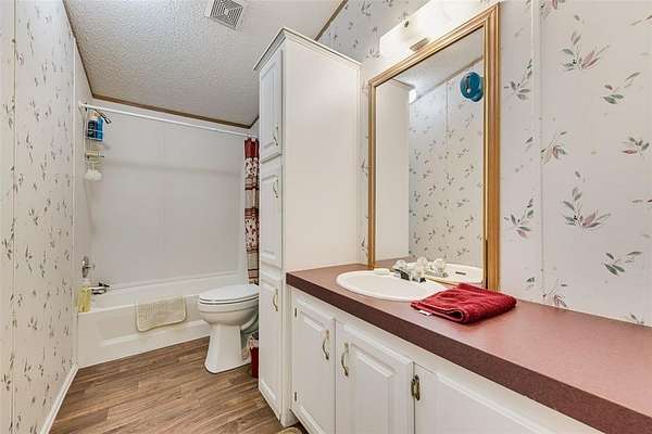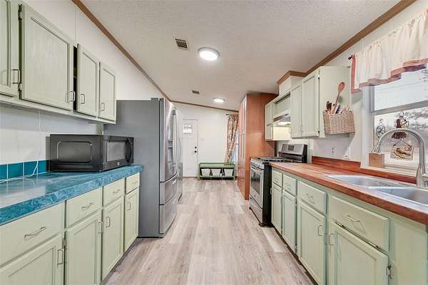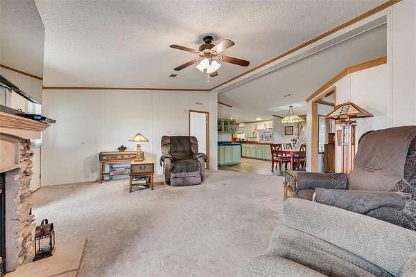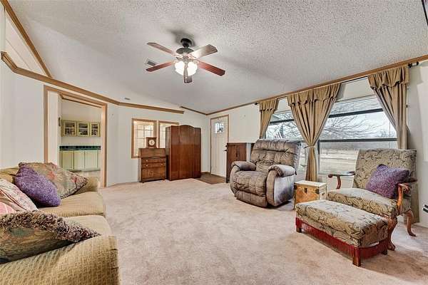Welcome home to this well-maintained doublewide nestled on almost 2 peaceful acres, perfect for anyone craving space, privacy, and affordability. Inside, you'll find a recently updated eat-in kitchen with a gas range, abundant cabinetry, and generous counter space, ideal for everyday living and home cooked meals. This home offers two living areas, including a formal living space and a large family room featuring a cozy wood-burning fireplace. The split bedroom floor plan provides added privacy, making it comfortable for everyone. Step outside and enjoy the inviting front and back porches, perfect for summer BBQs, morning coffee, or relaxing evenings. A 2-car carport adds convenient covered parking. Plus Storage Shed. Located in Venus ISD and ready for a new owner, this property delivers space, comfort, and value.