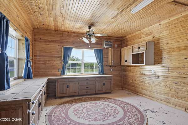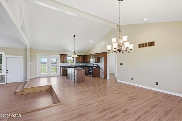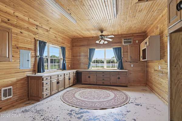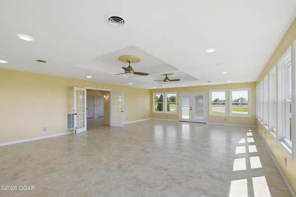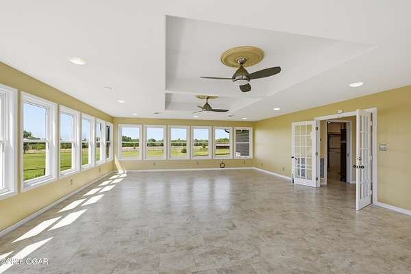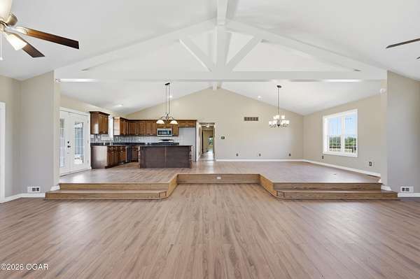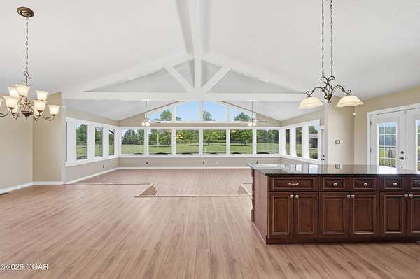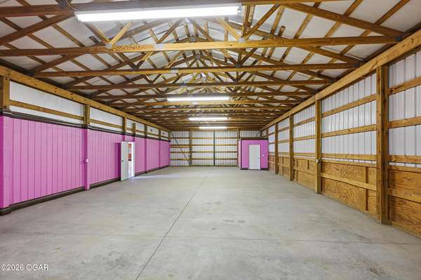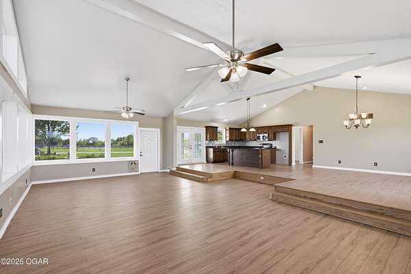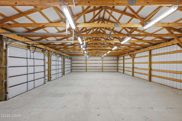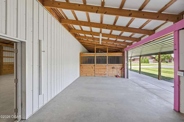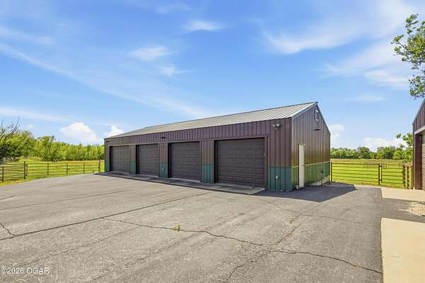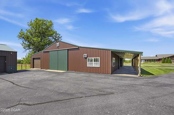 Pristine acreage located just north of Joplin off Hwy 96, offering an ideal setup for livestock and equestrian use. This beautiful property features piped fencing, automatic waterers, multiple paddocks, numerous loafing sheds, and a well-designed horse barn that includes full living quarters. Two fully stocked lakes/ponds provide both recreation and functional water sources for livestock. The spacious home offers open living areas with large windows overlooking the surrounding farm, creating a bright and inviting atmosphere. The residence sits well back from the road, providing exceptional privacy and peaceful views in every direction. There are far too many features to list here -- a complete amenities sheet can be provided upon request. Property may also be purchased with less acreage to suit buyer needs.