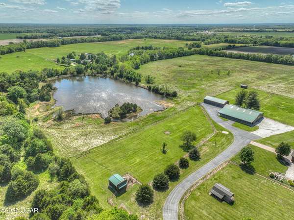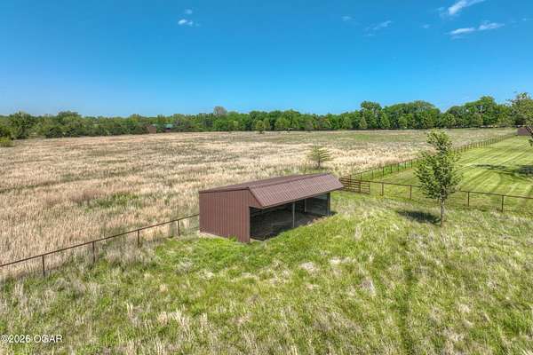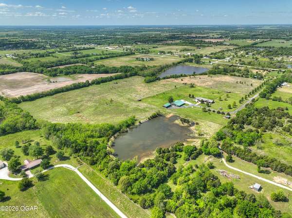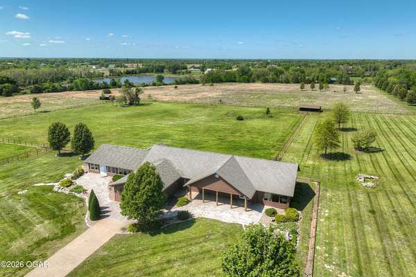 20 Pristine Acres -- Livestock & Equestrian Property | Additional Acreage Available** Pristine acreage located just north of Joplin off Hwy 96, offering an ideal setup for livestock and equestrian use. This beautiful property features 20 acres with piped fencing, automatic waterers, multiple paddocks, numerous loafing sheds, and a well-designed horse barn with living quarters. A stocked pond provides both recreation and a functional water source for livestock. The spacious home offers open living areas with large windows overlooking the surrounding farm, creating a bright and inviting atmosphere. The residence sits well back from the road, providing exceptional privacy and peaceful views in every direction. Additional acreage available for purchase: home with 40 acres or home with 65.84 total acres. There are far too many features to list here -- a complete amenities sheet is available upon request.
