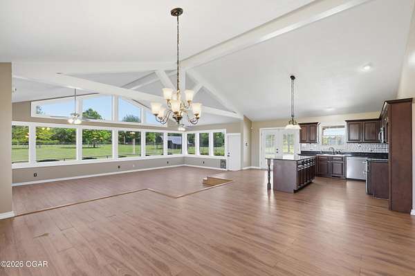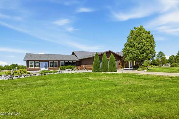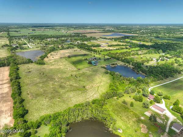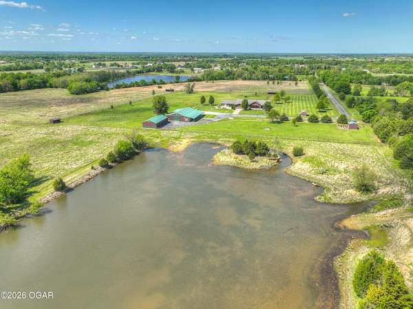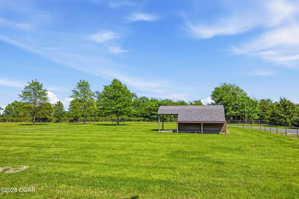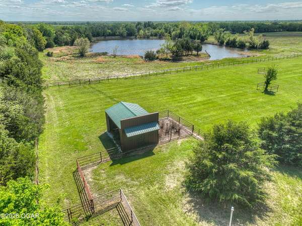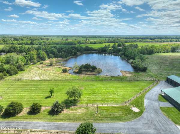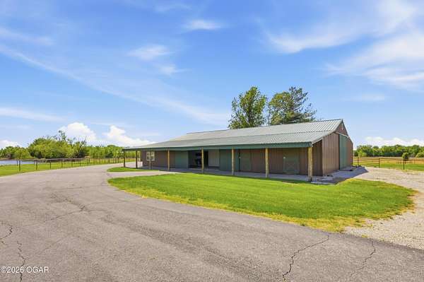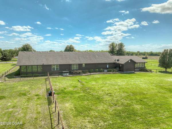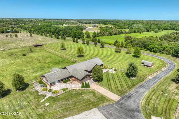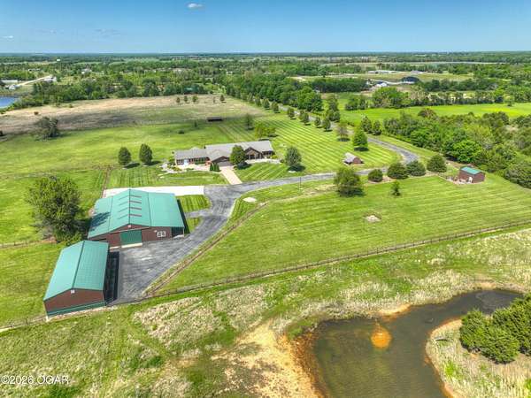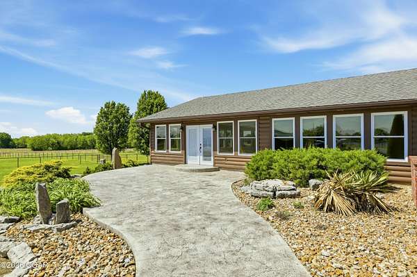 40-Pristine Acres -- Livestock & Equestrian Property. Pristine acreage located just north of Joplin off Hwy 96, offering an ideal setup for livestock and equestrian use. This beautiful property features 20 acres with piped fencing, automatic waterers, multiple paddocks, numerous loafing sheds, and a well-designed horse barn with living quarters. A stocked pond provides both recreation and a functional water source for livestock. The spacious home offers open living areas with large windows overlooking the surrounding farm, creating a bright and inviting atmosphere. The residence sits well back from the road, providing exceptional privacy and peaceful views in every direction. PROPERTY CAN BE PURCHASED: home with 20 acres or home with 65.84 total acres. There are far too many features to list here -- a complete amenities sheet is available upon request.