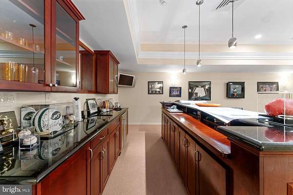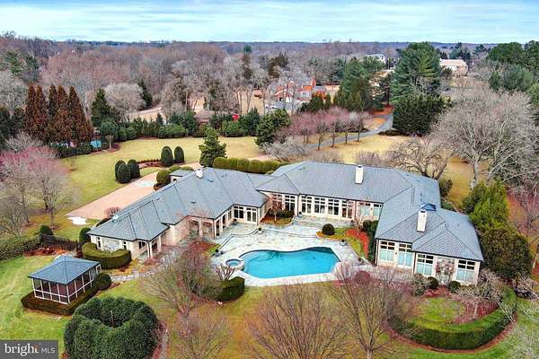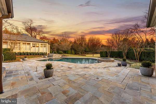 Luxury Oasis in Great Falls - A Private 5-Acre Estate Tucked away on a private road off Georgetown Pike, this stunning 5-acre estate offers an unparalleled blend of elegance, comfort, and resort-style living. Boasting nearly 9,000 square feet on the Main Level, and 13000 square feet under roof for the ultimate in single-level living. This custom-built home is a masterpiece of design, featuring the highest quality materials, exquisite craftsmanship, and over $1 million in breathtaking landscaping. Sophisticated Interior & Grand Living Spaces As you step through the grand mahogany double doors, a magnificent reception hall with hardwood floors and custom moldings welcomes you. The sunken formal living room, with a striking masonry fireplace and expansive views of the pool, creates a warm and inviting atmosphere. Adjacent, the formal dining room also overlooks the outdoor oasis, setting the stage for elegant gatherings. The chef's kitchen is a culinary dream, featuring two center islands-one for cooking and another for prep-top-of-the-line appliances, industrial-strength gas cooking, a Sub-Zero refrigerator, black galaxy countertops, and custom flat paneled cherry cabinetry. A spacious Costco pantry, powder room, and garage entry foyer provide additional convenience. The open-concept breakfast area, with walls of glass, seamlessly flows into the family room, which showcases a stunning stone fireplace, custom built-ins, and recessed lighting throughout. Just outside, an outdoor kitchen and private poolside bathroom, featuring a private spa with a sauna, shower. All this elevates the outdoor entertaining experience. Private Office Wing & Luxurious Bedrooms A dedicated office wing offers two private offices-ideal for working from home-along with an additional formal powder room. The bedroom wing features five oversized bedrooms, each with en-suite bathrooms, walk-in closets, and recessed lighting. The primary suite is a sanctuary of relaxation, with a private sitting area, dual-sided fireplace, and direct access to the patio and pool. The spa-like primary bath boasts dual vanities, a soaking tub, an expansive custom closet, and a luxurious shower with multiple showerheads and body sprayers. Incredible Lower Level & Guest House The lower level is designed for ultimate entertainment, featuring a stylish sitting area, billiards room, game room, and a custom bar with pendant lighting and natural cherry cabinets as well as black galaxy countertops. Dual pocket doors lead to a state-of-the-art media room with seating for ten. Additional highlights include a spacious exercise room and a powder room. A separate guest house offers a private retreat with a bedroom, living room, small full kitchen, and bathroom. The quest has its own entrance-ideal for extended stays or an au pair or in law suite. Resort-Style Outdoor Living This estate's outdoor spaces are truly spectacular. A heated inground pool serves as the focal point, visible from most rooms in the home. Lush landscaping, with up-lighting on mature trees, creates a serene ambiance. A sports court, hidden within the landscape, offers the perfect space for basketball enthusiasts. A screened porch overlooks the expansive backyard, providing an additional space to unwind. The five-car garage is a car collector's dream, complete with heat and a unique drainage system. The paver driveway, with a front parking area and motor court, enhances the estate's grand entrance. An Unparalleled Offering This extraordinary Great Falls estate offers privacy, luxury, and every imaginable amenity. A true oasis, just minutes from the heart of Great Falls and major commuter routes, yet worlds away in tranquility. Schedule your private tour today and experience the unmatched beauty of this remarkable home.