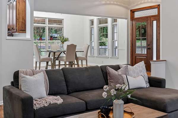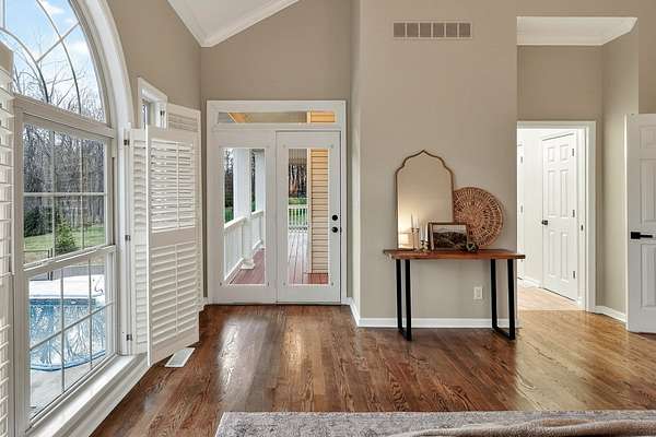 Riverfront property at its finest! This exceptional home offers everything you need. 4/5 bedrooms, 3.5 bathrooms, and an open living room featuring a wood burning fireplace. Enjoy the elegance of beautiful hardwood and tile flooring throughout. The dining area complements a great kitchen with a vaulted ceiling in the breakfast nook. The owner's suite is conveniently located on the main level and includes a beautiful tile shower and spacious walk-in closet. A stunning staircase leads to two additional bedrooms and a full bathroom upstairs. The lower-level family area is enhanced by a wood-burning stove. Additional features include a three-car detached garage and a 20x40 inground pool. The expansive backyard extends to the riverfront, providing a serene and picturesque setting.