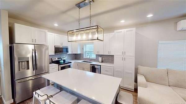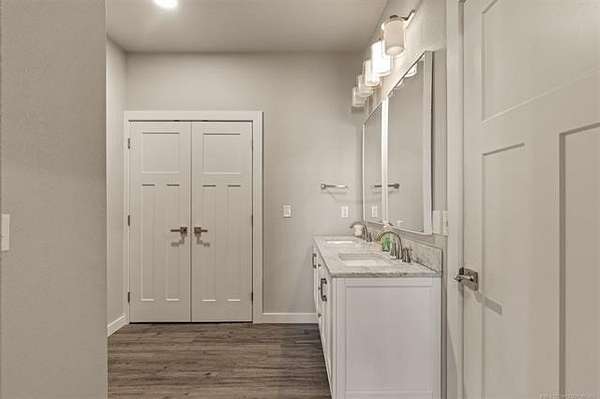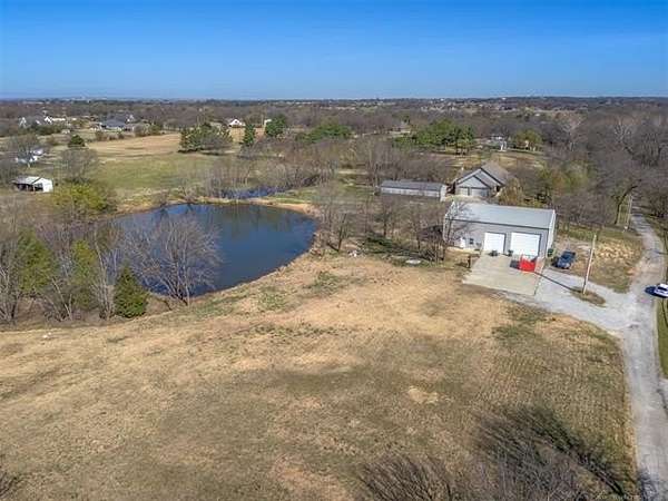 Beautiful location on quiet dead end road located between Hwy 75 and Hwy 169 in Owasso schools. Hard to find building site surrounded by estate homes with 3.8 acres. Property is square and is approximately 404ft x 407ft and contains one large pond that will make great views from the back porch of your new construction home. 40 x 60 metal building on site with 16 foot sidewalls and 14ft overhead doors. Approximately 1600 sqft of building has been finished out complete with a kitchen, laundry facilities, 3 beds, 2 living areas and 2 bathrooms. Shop area has an overhead door on front and back side to allow pulling through with a boat, RV etc. Rare opportunity to live in an on site Barndo while you plan and construct your home. The Barndo is equipped to accommodate immediate living arrangements and will make an excellent accessory dwelling unit and/or pool house in the future.