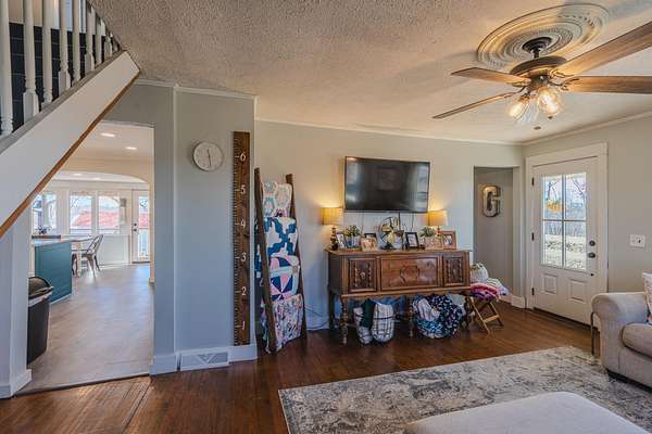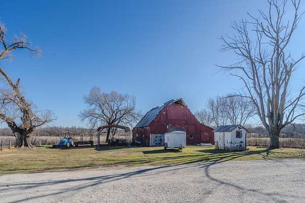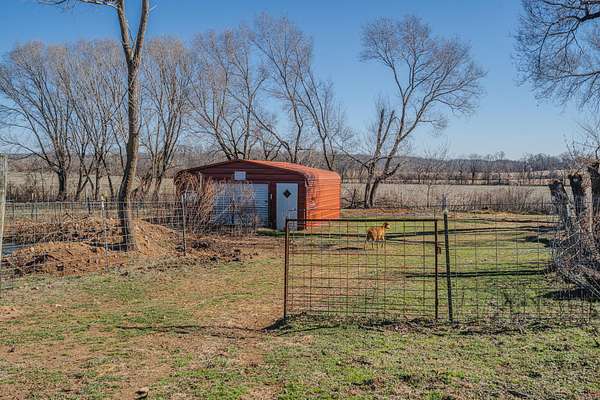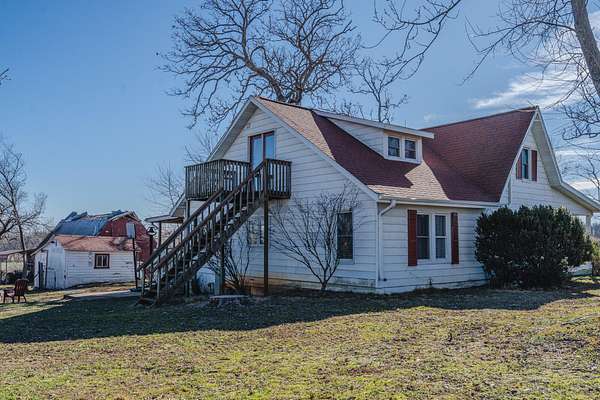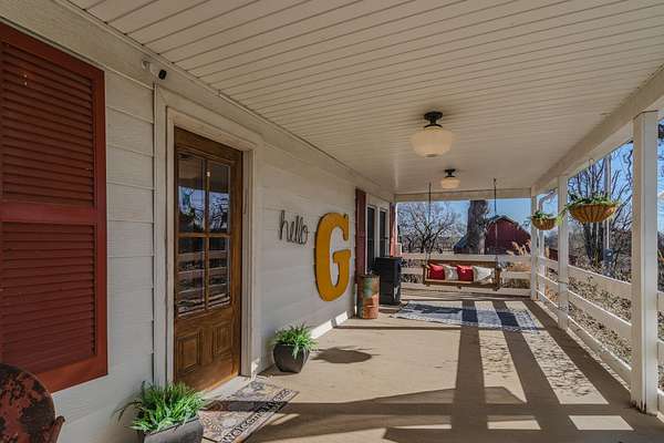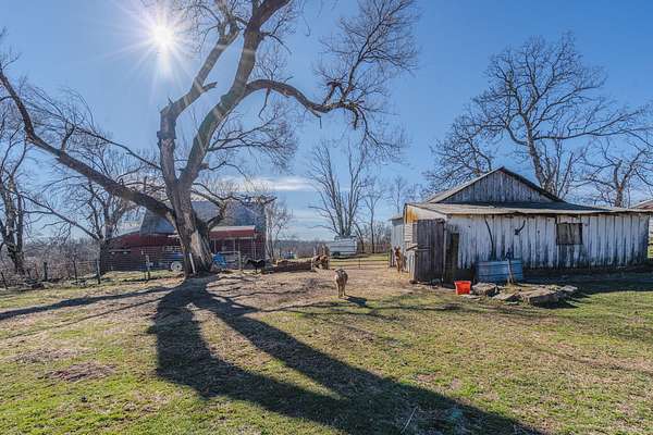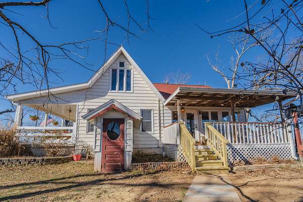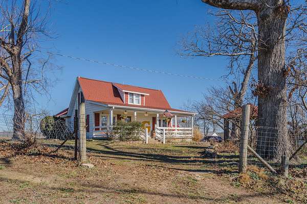 This is the one you've been looking for! 4-bed / 2-bath farmhouse less than 2 miles from city limits. This hobby farm boasts a barn, garden shed, old spring house, hay barn, goat shed, and a gazebo in a well-laid-out 2.94 acres with perimeter fencing and multiple paddocks. Perfect for goats and chickens, a couple of calves, or a miniature donkey named Nacho. Full-length covered front porch and a second covered porch off of the kitchen and dining room allow for beautiful sunset views.The home itself has a newly remodeled kitchen and dining area with granite countertops, new cabinets, subway tile, LVT flooring, and gorgeous sunroom-style windows providing a plethora of natural light. A remodeled guest bath and pantry round out the kitchen area. The main floor also consists of a living room, primary bedroom, and oversized laundry room converted from a bedroom (included in the bedroom count). Most of this level boasts old, original hardwood floors that lend to the overall warmth and charm of this home.Upstairs contains two more bedrooms, both of which are incredibly unique spaces that kids will love. There is also a common area that could be used as a playroom, office, TV area, or whatever suits your needs.The cellar-type basement houses the new plumbing with a maniblock system, new water heater, new water softener, new blue light water filter, and new pressure tank. It also provides great protection in storms, as verified during the tornado in the spring of 2025. There is easy access from the exterior or from a trap door in the laundry room closet. The house has central HVAC with a propane furnace, a central Hardy wood furnace as a backup, a propane wall heater in the living room in case of a power outage, and an energy-efficient mini-split upstairs.