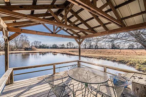 - Barb Wire Fence, Barn, Concrete Walks, Covered Deck, Covered Front Porch, Covered Patio, Fence, Garden Area, Landscaping, Mature Trees, Out Building, Outdoor Lighting, Partial, Pond(s), Storage Building, Storage Shed, Trees, Woven Wire