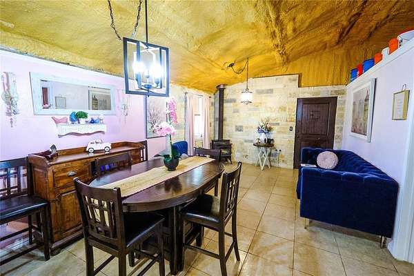 2 bedroom, 1 bath barndominium featuring a cozy wood burning fireplace, excellent insulation, and a comfortable eat in kitchen. There is also a versatile bonus room that can be used as an office, podcast space, nursery, or flex room to suit your needs. The property has been well maintained, with all 9 acres thoughtfully cleared and cared for. Enjoy a charming picnic area surrounded by blueberry, apple, pear, and raspberry trees. Additional features include a wood log shed fully stocked with oak, a 13-gallon water storage shed, and a fenced area with a water trough for animals. Solar panels, owned by the sellers, can be included or excluded based on buyer preference. The seller services the water well and septic system at least once per year, ensuring consistent performance and quality. Come experience affordable country living with everything you need, and nothing you don’t.