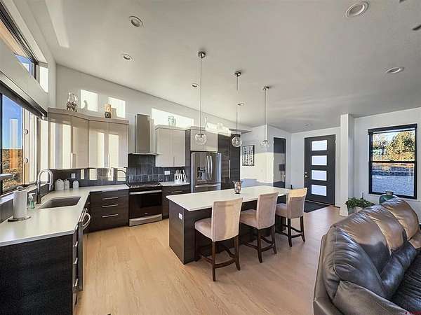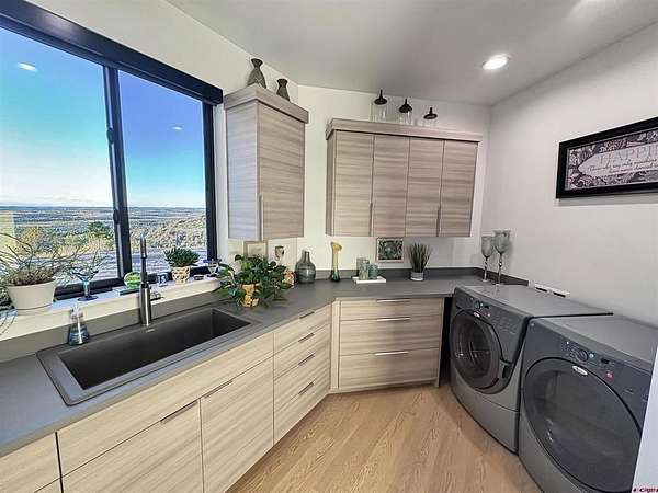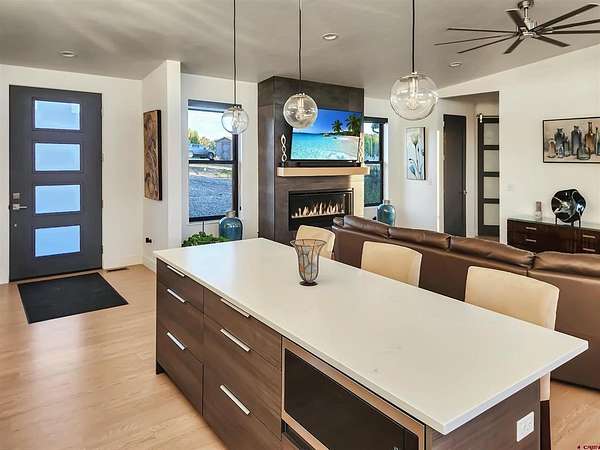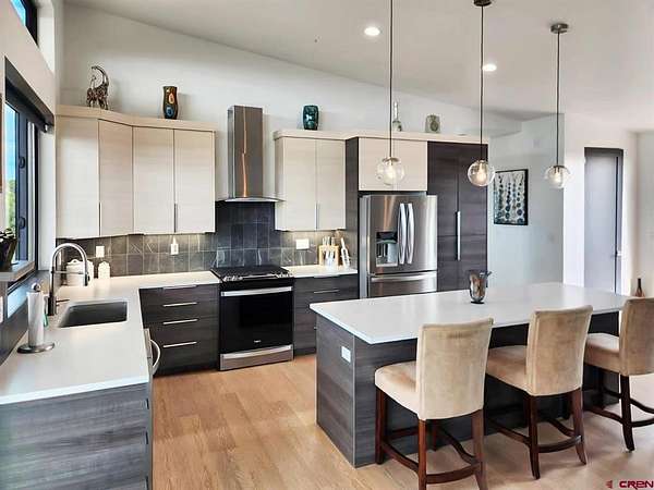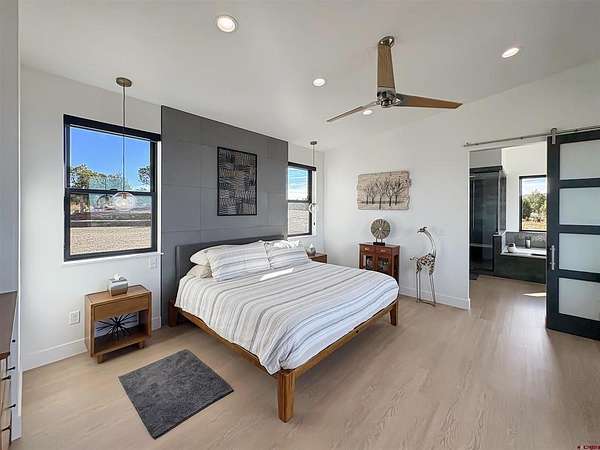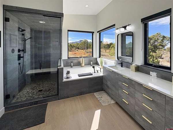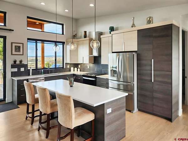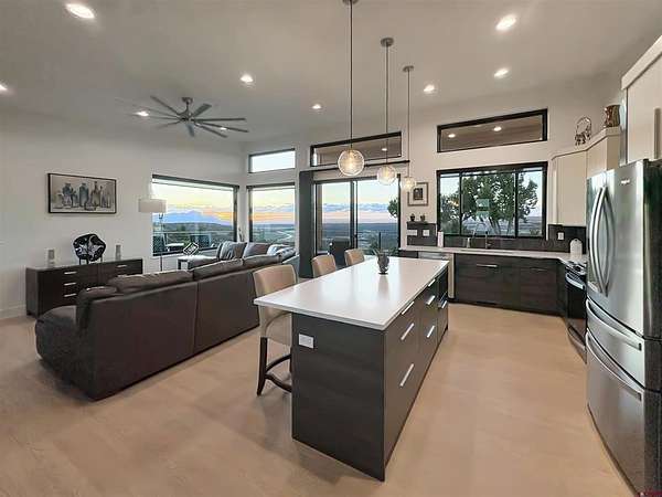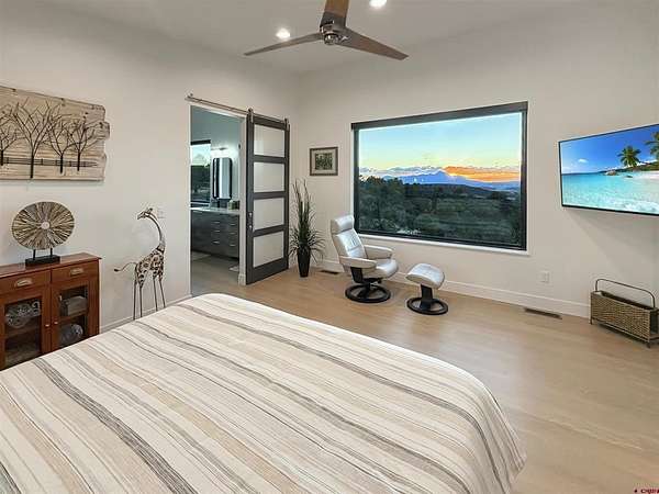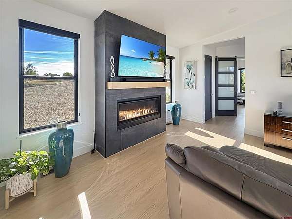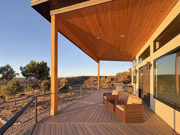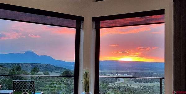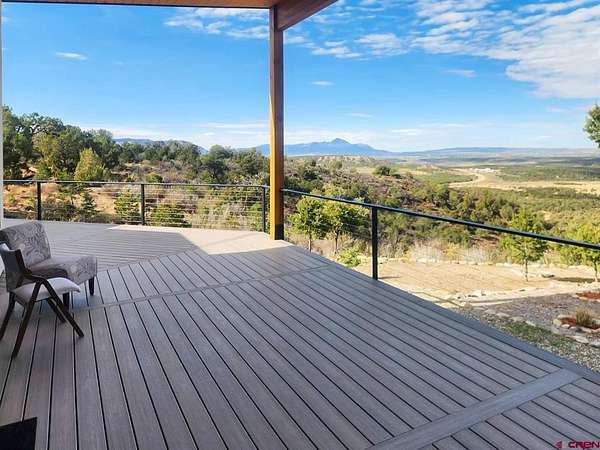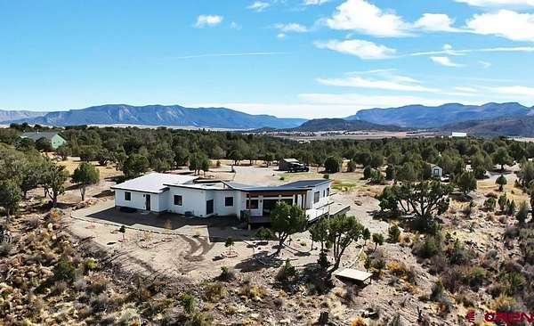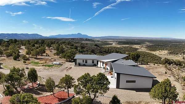 Hilary Priestley, Regents Real Estate Group Inc., C: 970-901-2362, hilary@regentsrealestategroup.com, www.crenmls.com: Don't miss the opportunity to own this exceptional home in the heart of Southwest Colorado. This custom-built modern masterpiece, completed in 2022, sits on an impressive 7.21 acres and showcases the meticulous planning that went into every aspect of its design. Nestled on a hillside, this home boasts unparalleled views of the mountains and valley, offering a front-row seat for the stunning sunsets that grace the horizon each evening. The oversized Anderson windows strategically placed throughout frame spectacular views that invite the beauty of nature inside. Just south, the iconic Mesa Verde stands proud, adding a captivating touch to your daily scenery. As you step into the expansive living room and kitchen area, you'll be welcomed by soaring vaulted ceilings and abundant natural light filtering through large windows. The kitchen is a chef's dream, featuring custom cabinets that maximize storage while maintaining sleek aesthetics, under-cabinet lighting for ambiance, and exquisite quartz countertops--ideal for entertaining at the oversized bar. Open the kitchen glass sliding door to the back deck, your outdoor oasis, which is perfect for gatherings. One half is covered with a vaulted tongue-and-groove ceiling and plenty of exterior lighting for evening enjoyment, while the other half remains open to soak up the sun on lovely days. The primary bedroom is a spacious retreat, boasting an ensuite bathroom that includes a luxurious soaking tub, a double vanity, a private water closet, walk in closet and a generous steam shower. Enjoy the convenience of push-button operated window blinds in both the primary suite and bath for effortless privacy control. A second bedroom also features an ensuite bathroom and a walk-in closet for guests. A dedicated office space with a built-in desk and storage adds to the home's functionality, while the laundry room offers a soaking sink, ample counter space, and cabinet storage. The dimmable lighting throughout the home allows you to create the perfect atmosphere for any occasion. Don't forget the oversized garage, capable of housing three vehicles along with space for a workbench and additional room for crafts. Central heating and cooling ensure year-round comfort, complemented by a cozy gas fireplace for chilly winter nights. The low-maintenance landscaping harmonizes with the natural surroundings, enabling you to relax in a beautiful setting without the burden of extensive yard work. With another small deck just steps from the back door overlooking the tranquil valley, you can unwind and take in the serene evenings. A convenient shed offers storage for gardening supplies, while the oversized crawlspace provides easy access for additional storage needs. Two full RV hookup and parking spots near the entryway welcome your RV-traveling guests, turning this home into the perfect getaway destination. Don't let this one-of-a-kind gem slip away!