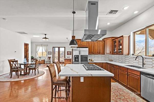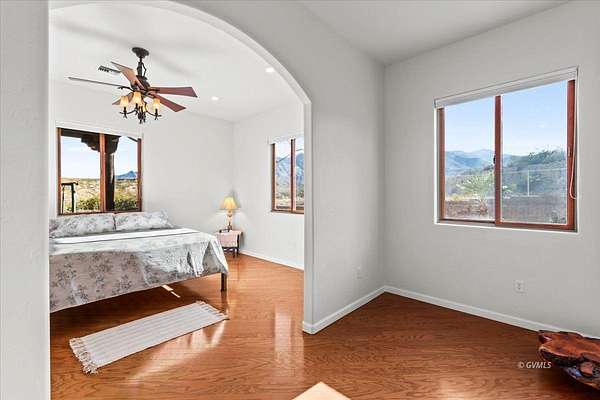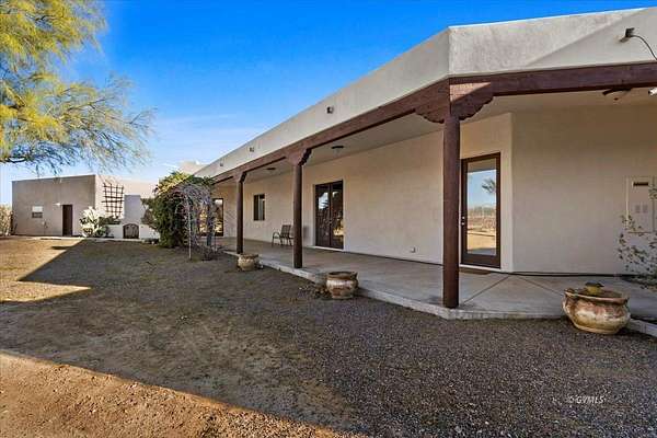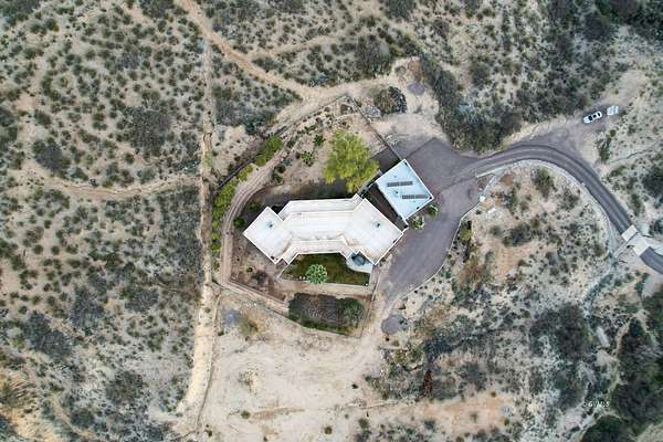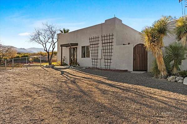 This Beautiful 4-Bedroom, 4-Bath Santa Fe Styled Villa is Nestled atop a 20 acre mesa in foothills of the Majestic Graham Mountains of Southeastern Arizona; a Picturesque Hide-away a mere 20 minute drive from the Town of Pima. (It's literally the very last home on "a Road Less Travelled".) Upon arriving you will enjoy the ambience of Breathtaking Beauty, Seclusion, and Serenity. The property's southern and western boundaries are bordered by public lands, giving you access to Thousands of Acres for hiking, wildlife sighting, and other outdoor activities. The Cluff Reservoir, a mere 3 to 4 minute drive from your "homestead", provides convenient opportunities for camping, fishing, swimming, and canoeing. The home itself is an Exquisite Beauty, Expansive windows and patio doors provide an unending view of the beauty that surrounds this estate. The home's electrical power is mostly provided by a fully-owned solar system. An abundance of sweet tasting water for the home and grounds is supplied via your private well. The detached 3-car garage is Climate Controlled with