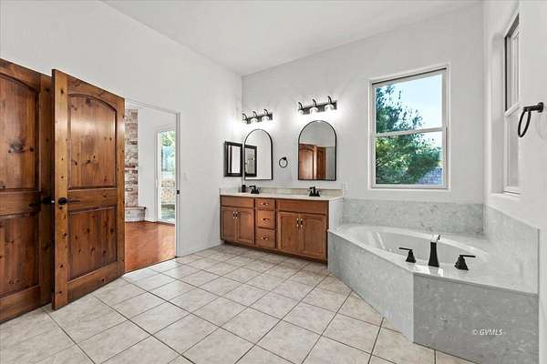 - Automatic Sprinklers, Covered Patio, Dirt Road Type, Drip System Sprinklers, Fema Flood Ins (not Required), Full Fenced, Full Landscape, Garden Area, Horse Property, Lawn, Outdoor Lighting, Paved Road Type, Pool, RV/Boat Parking, View of Mountains