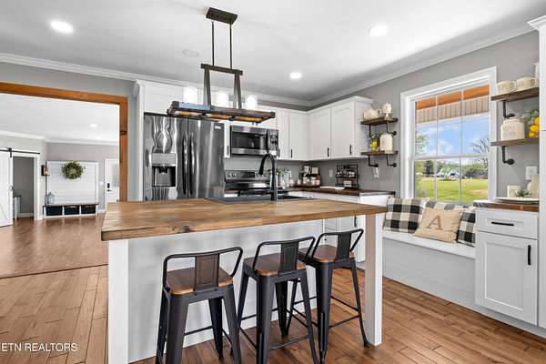 Welcome to this beautifully designed home set on 2 flat, usable acres--offering the perfect blend of space, comfort, and functionality. This 3-bedroom + bonus room, 2.5-bath home features a highly desirable main-level master suite, complete with a tiled walk-in shower and private access to a screened porch--your own peaceful retreat to enjoy morning coffee or unwind in the evenings. Inside, you'll love the open-concept layout with a cathedral ceiling in the dining area, a cozy gas fireplace, and upgraded finishes throughout, including 5'' baseboards, knockdown texture walls, and a mix of wood, tile, and LVP flooring--no carpet anywhere. The kitchen is equipped with stainless steel appliances and flows seamlessly into the main living space, making it perfect for entertaining. Step outside to find even more to love--a detached 25x25 two-car garage connected by a breezeway, plus a patio area with TV setup, ideal for game days or relaxing outdoors. And the playset remains! Need extra space? This property also includes a 38' carport with 30-amp RV hookup, a concrete driveway, and a low-maintenance vinyl exterior paired with a durable metal roof. At just 6 years young, this home offers modern construction with thoughtful upgrades in a peaceful setting--while still being convenient to town (only 2 miles from the Blount County Pellissippi Campus). Don't miss this incredible opportunity!