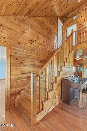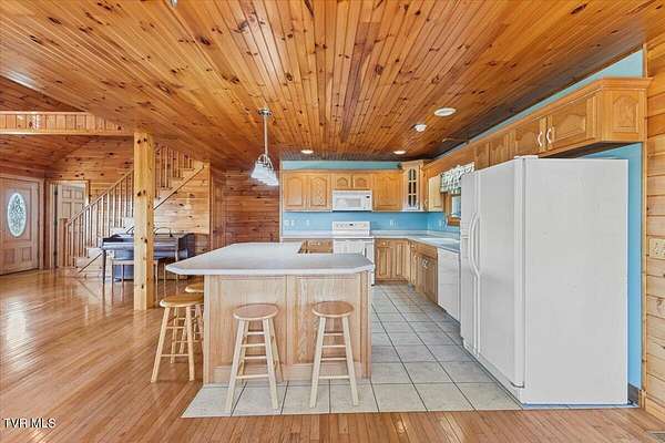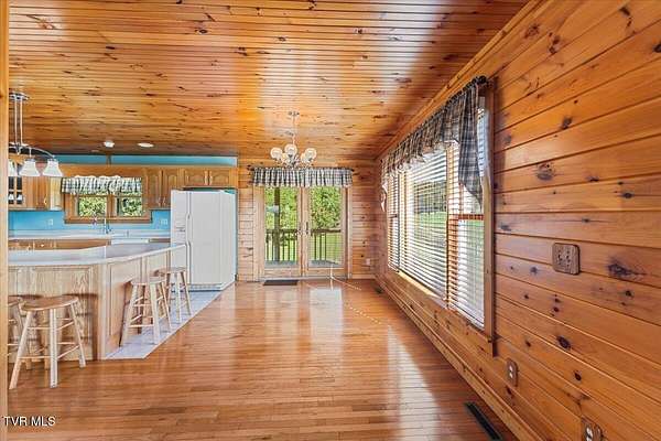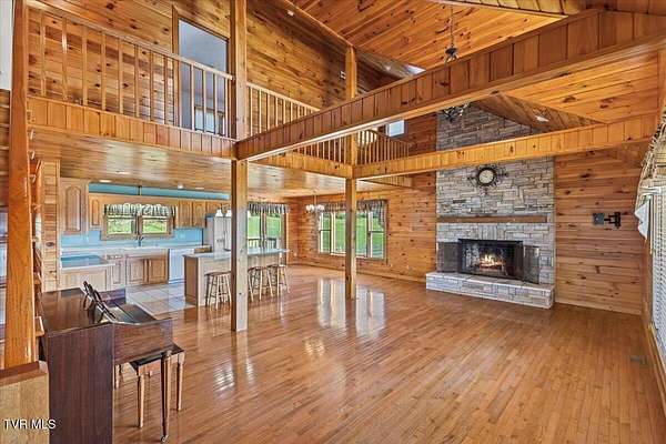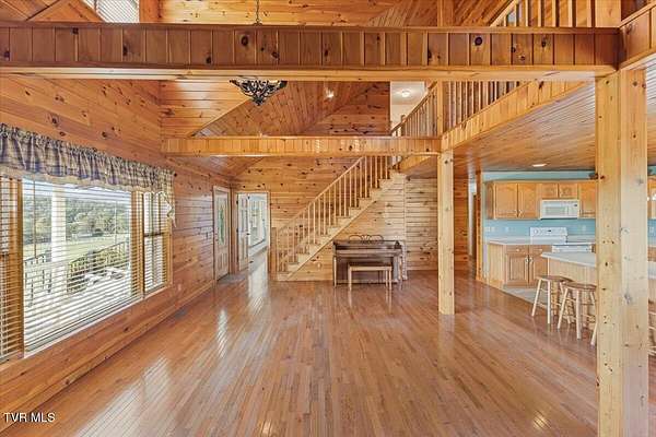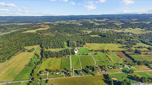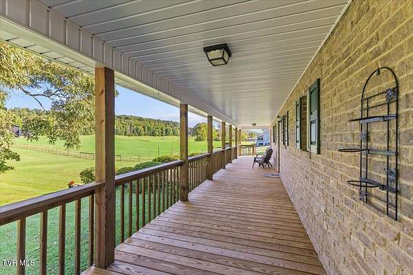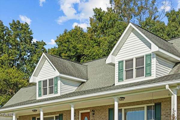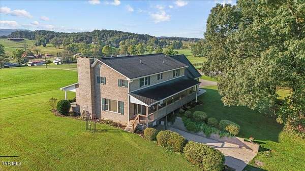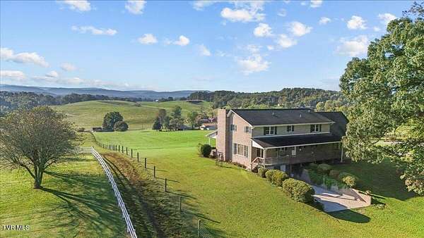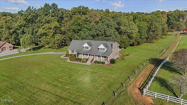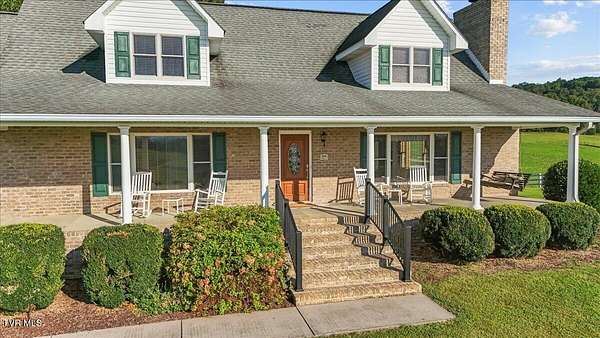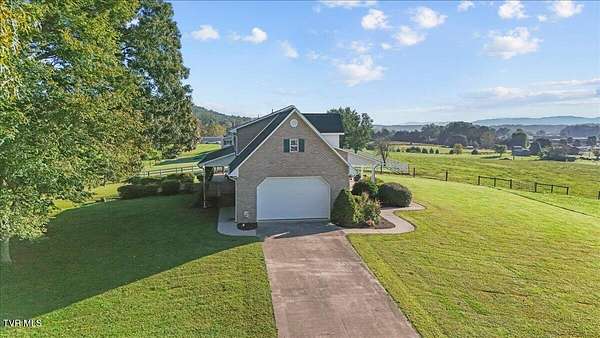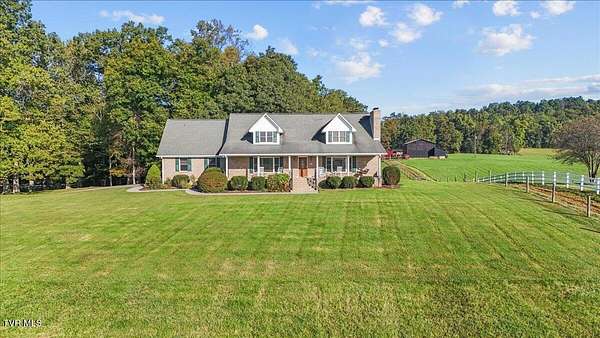 Welcome to your private retreat! This timeless brick cape cod sits on 11+ acres of rolling pastures and peaceful woodland, offering panoramic views of the mountains and surrounding countryside. The perfect property for those looking for a hobby farm, serene homestead, or just room to roam. Inside, you'll find a spacious, light-filled great room with vaulted ceilings and a stunning stacked stone fireplace. The open floor plan is perfect for entertaining and flows seamlessly to the dining room and well equipped kitchen that features a large island with seating. There is an oversized main-level primary suite with a full bath and a walk-in closet. You'll love waking up to the sunrise and beautiful pastoral views from the large picture windows. Finishing the main level is a half bath, a dedicated laundry room with utility sink, and a mud room located just off the attached 2 car garage. Upstairs there are 2 bedrooms and an additional flex room with an extra closet that makes an ideal space for an office, recreation, or guests. There is a spacious, centrally located full bath with double sink. You will also find an unfinished bonus room that offers ample storage or expansion potential. The gorgeous, white oak hardwood floors and tile found in the main level continue throughout the 2nd story. Enjoy the peace of a country morning as you watch the sunrise from your covered front porch and end your days with dappled sunlight through the mature shade trees from the comfort of your covered back porch. The long concrete driveway is a nice, maintenance-free upgrade to keep your cars and garage clean. The full unfinished basement with drive under garage provides additional parking and storage. This house was thoughtfully built with energy efficiency in mind and boasts a geothermal HVAC system which results in extremely low heating and cooling bills. The acreage includes a separately platted .52 acre parcel with road frontage on Main Street. This lot is a prime garden spot and has a spigot for irrigation to your crops Located in a small town on the Holston River, you will find amenities such as: The Creekside Park with picnic areas, Riverfront Park with a TWRA Boat Ramp for boating or kayaking, fishing docks, a scenic paved walk path along the river, basketball court, and public restrooms. There are locally-owned small businesses, music venues, and even a county-owned, public-use AIRPORT for aviation enthusiasts or small craft pilots! Schedule your private showing and see if this house is the one you could call HOME!